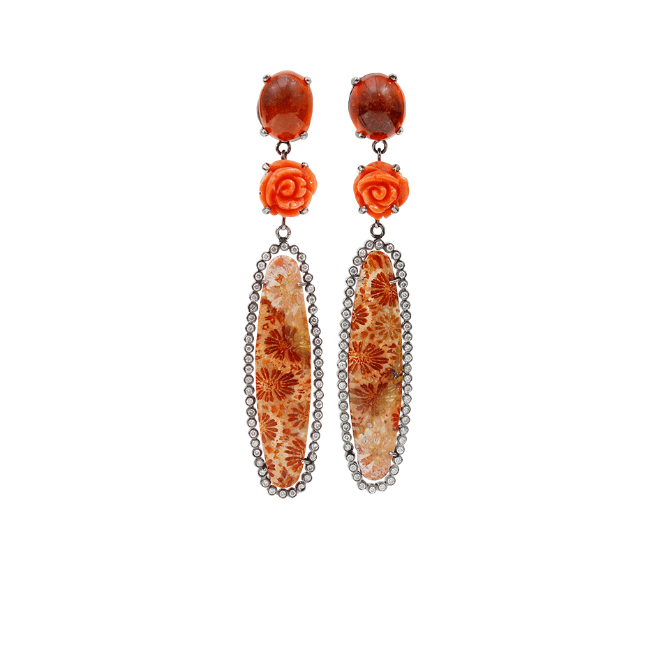 One-Of-A-Kind Fossilized Coral Earrings With Fire Opal And Diamonds