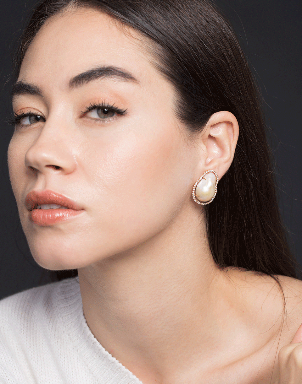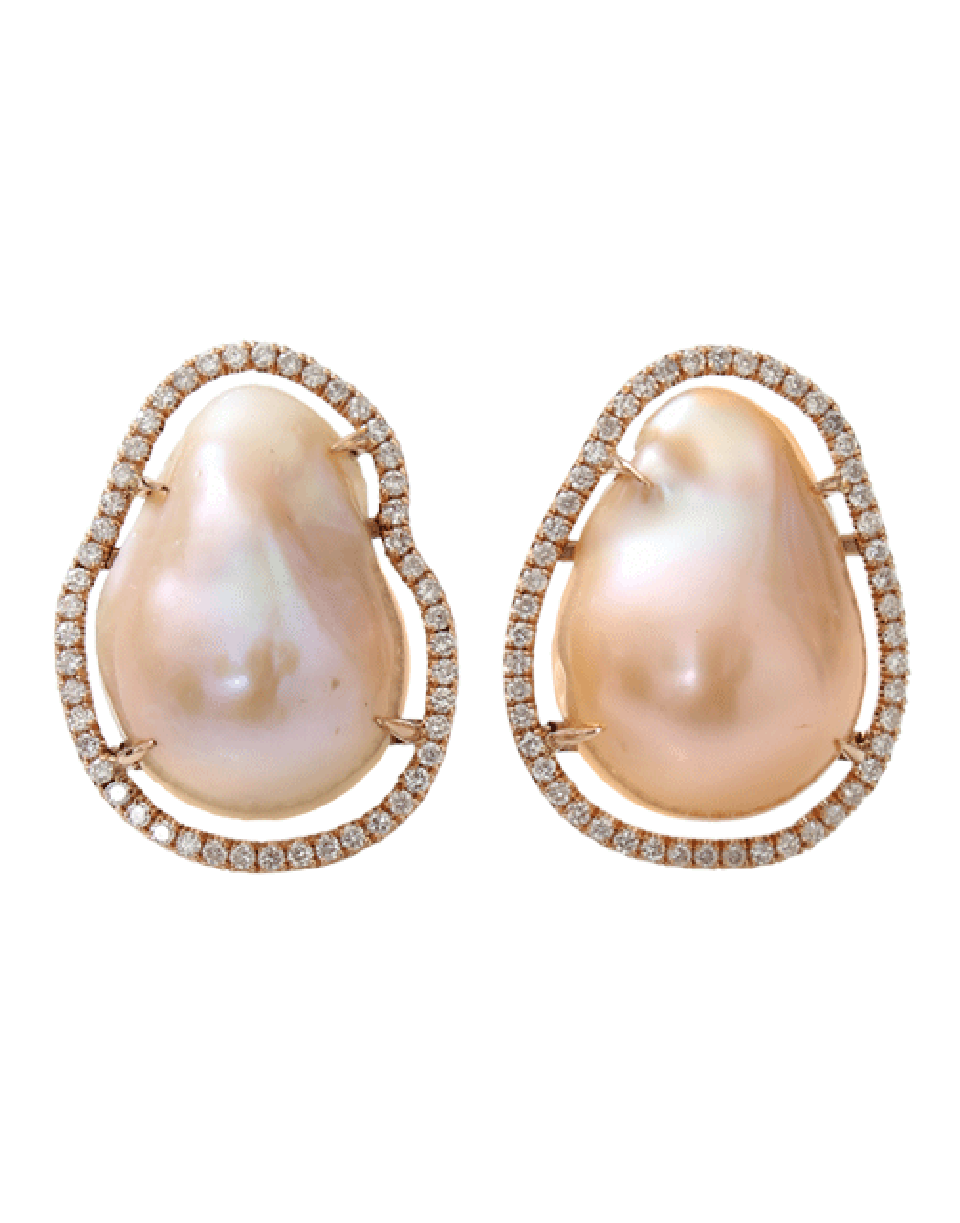 Natural Color Fresh Water Pearl Slice Earrings With Diamond Pave From Jordan Alexander