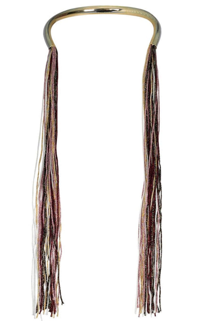 Open metal collar necklace with multi-color fringe from Missoni.