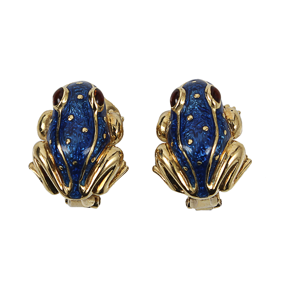 Give your jewelry collection an adorably chic addition with these frog earrings with rubies by David Webb.