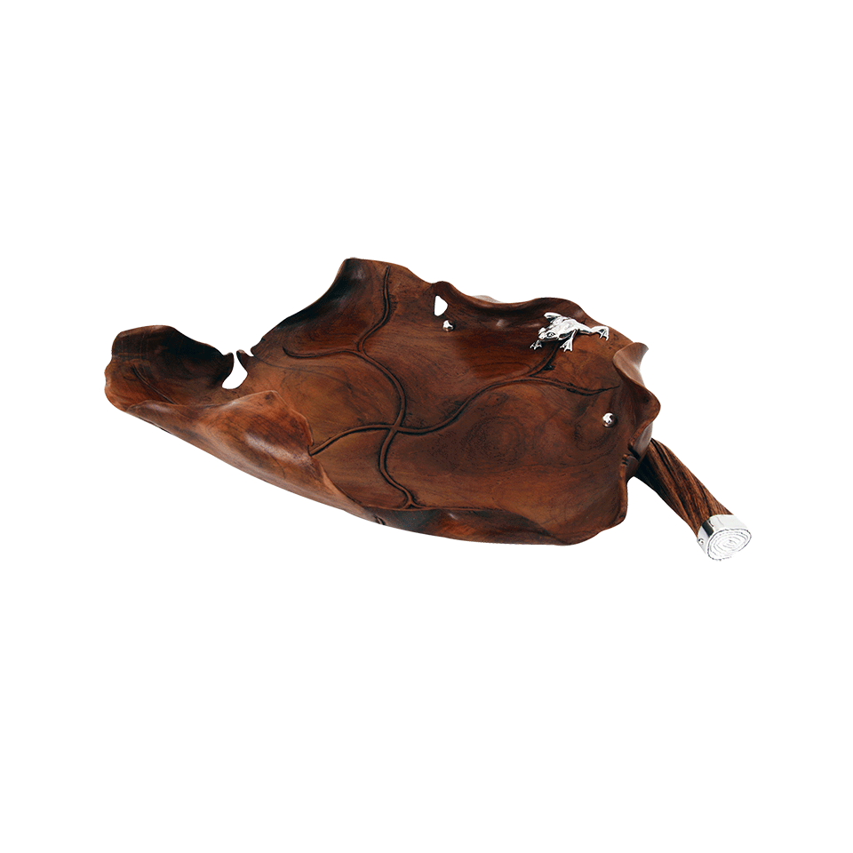 Lotus Leaf Teak Bowl With Sterling Silver Frog