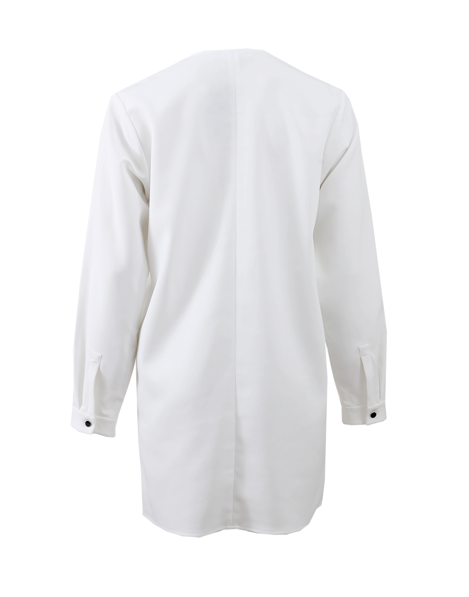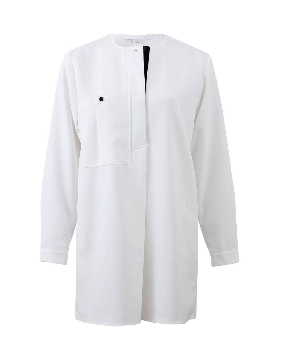 Scoop Neckline With Four Button Placket Closure And One Large Buttoned Chest Pocket