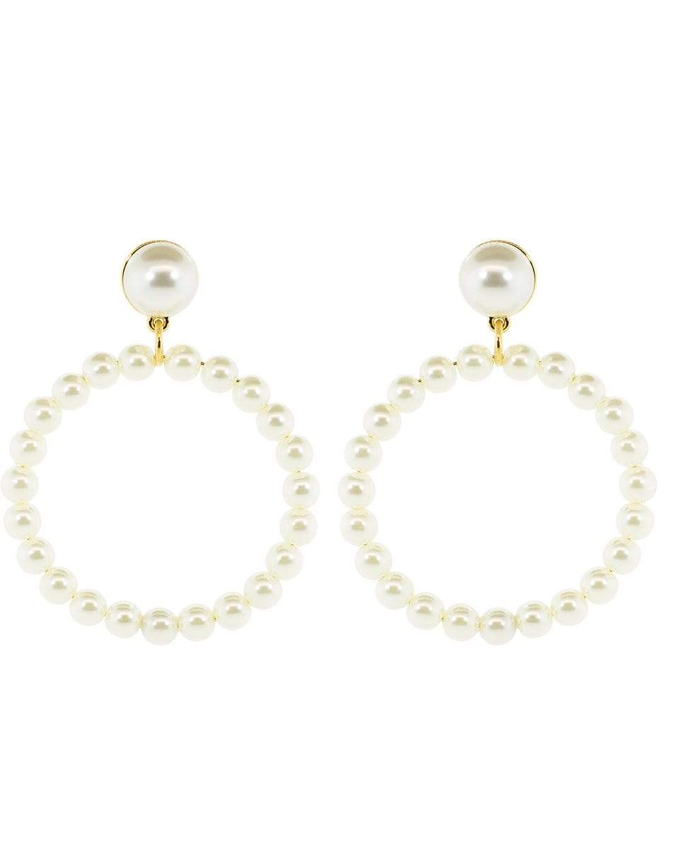 Lele Sadoughi lightweight pearl hoop earrings hand beaded with a 12mm crystal fireball post. For pierced ears.