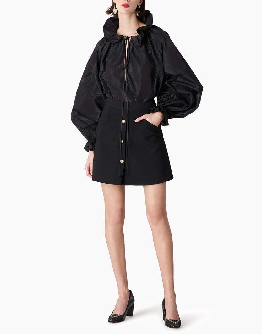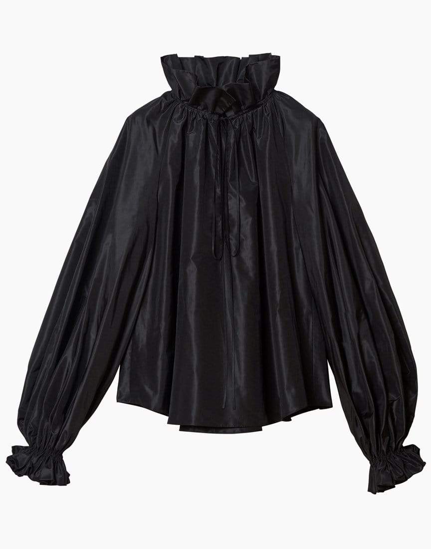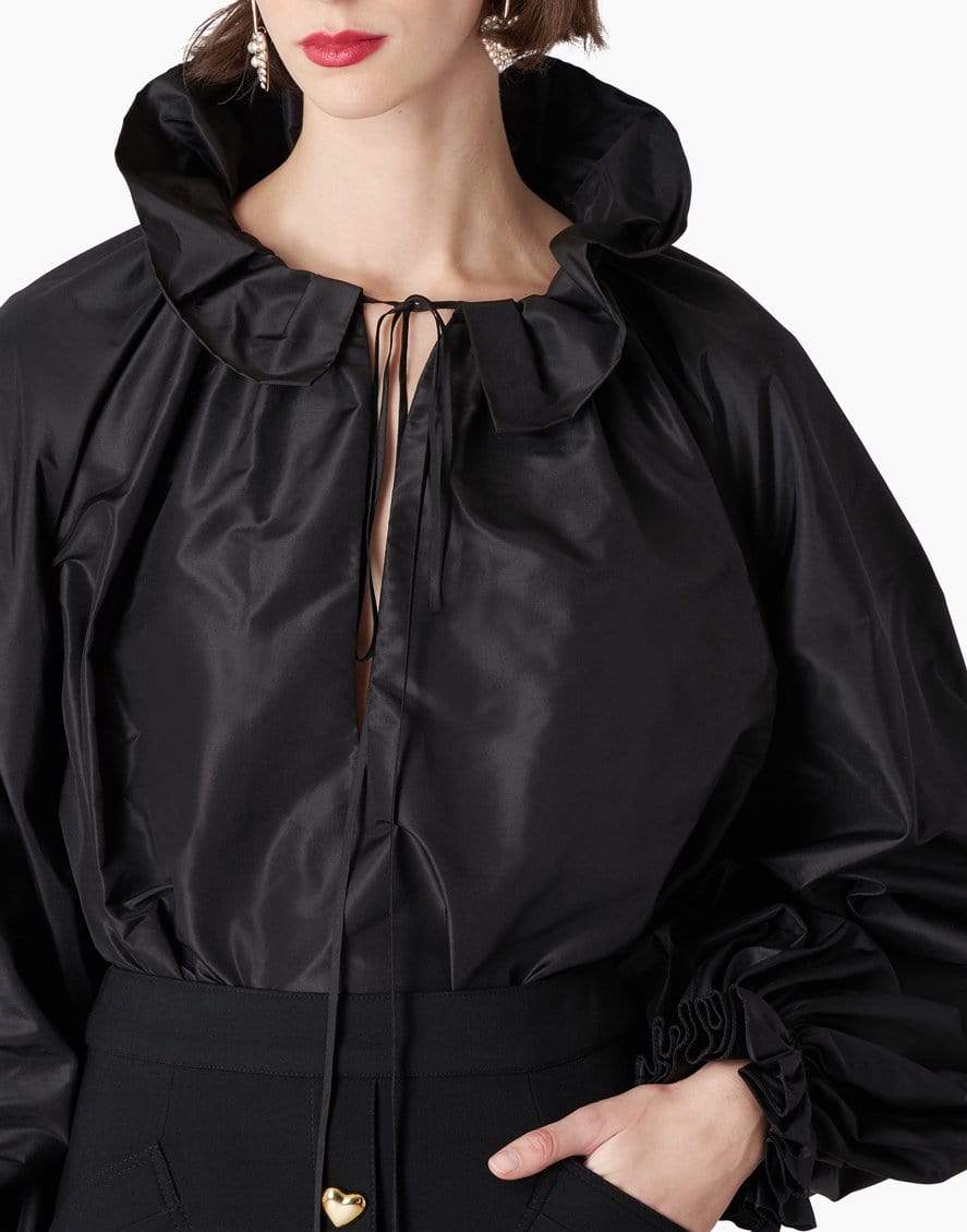 Carolina Herrera full ruffle puff sleeve blouse in black.100% Silk