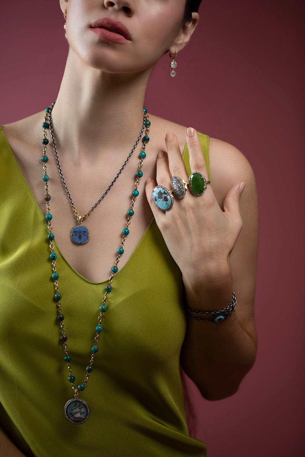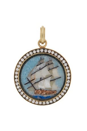 Sylva and Cie gallion mosaic multi stone ship pendant.