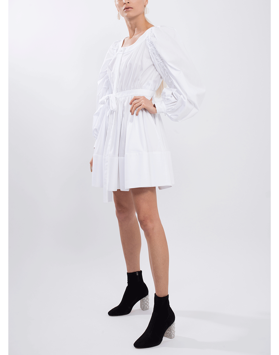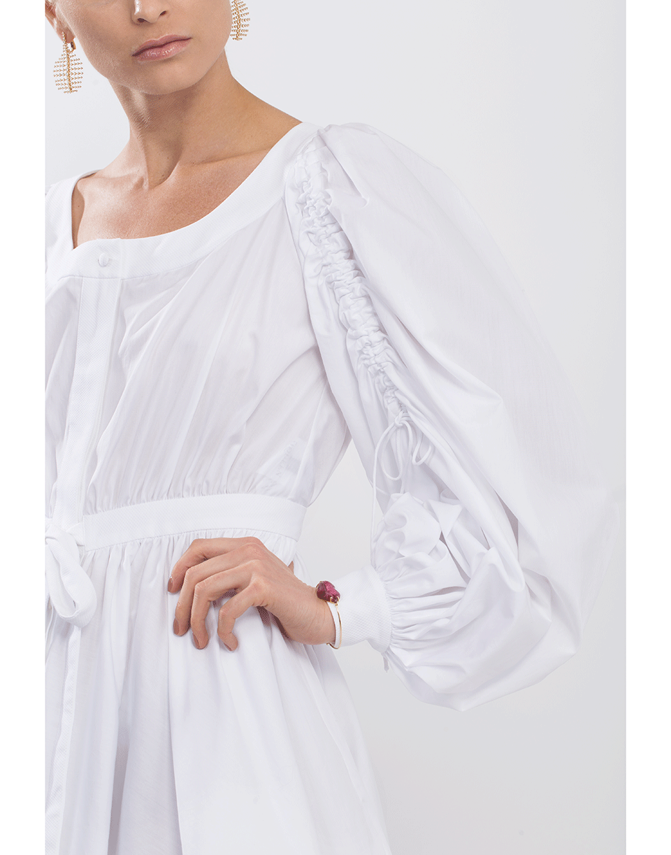 Long Gathered Sleeves With Loose Fitting Silhouette And Thigh Length Cut