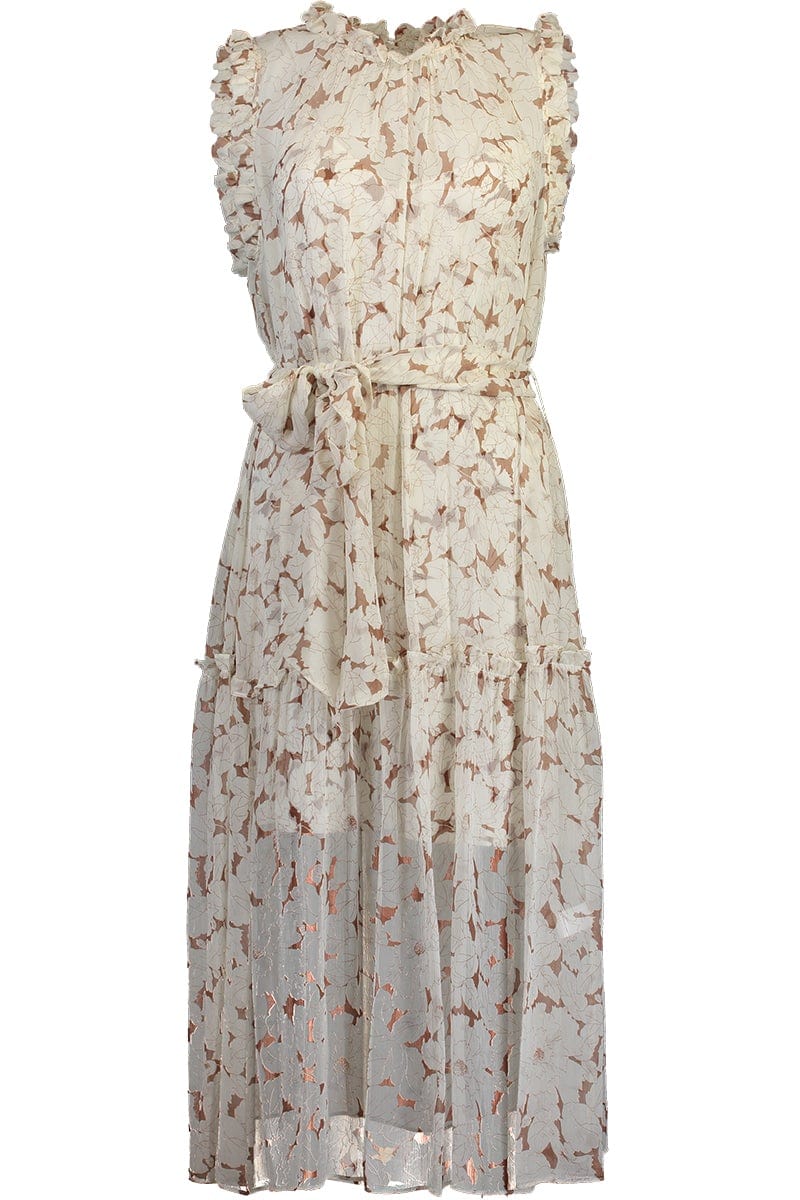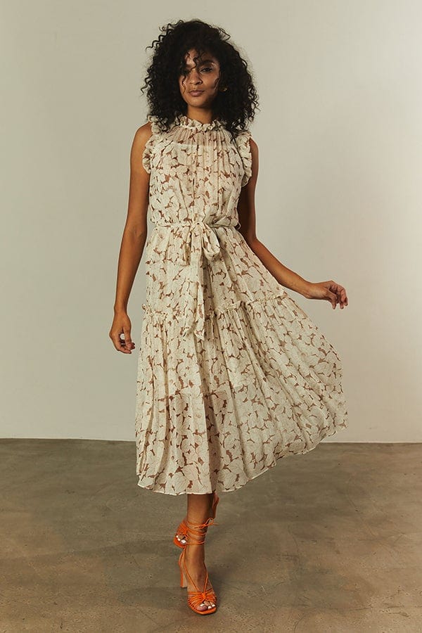 Christy Lynn sleeveless gemma dress in gold leaf.