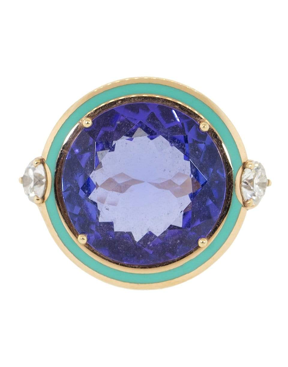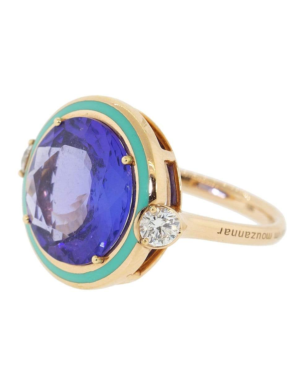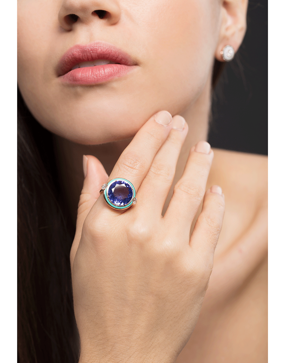 Gemma green enamel ring set with diamonds and tanzanite from Selim Mouzannar.