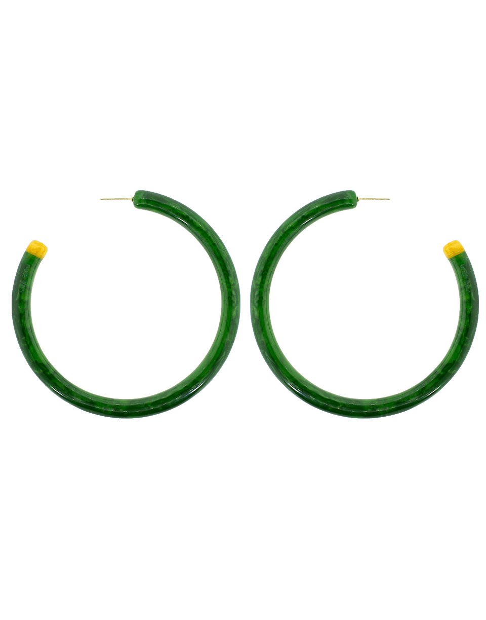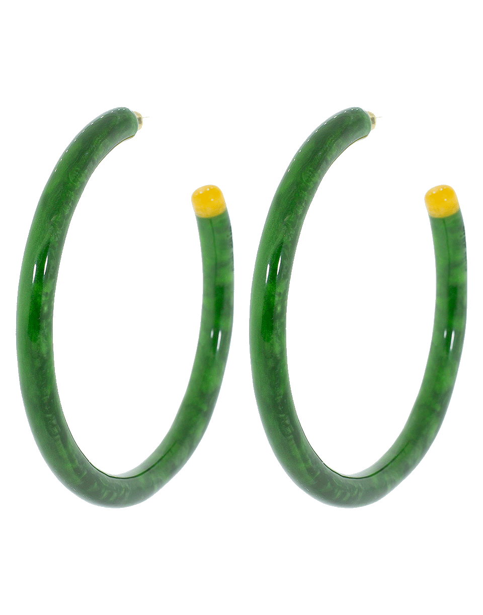 Transition your look from day to night with bold green earrings from Cult Gaia. They are crafted from lightweigtht acrylic and finished with gold-plated silver backs. For pierced ears.
