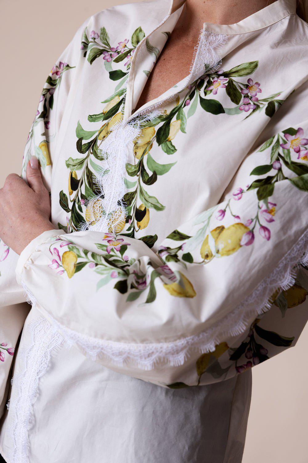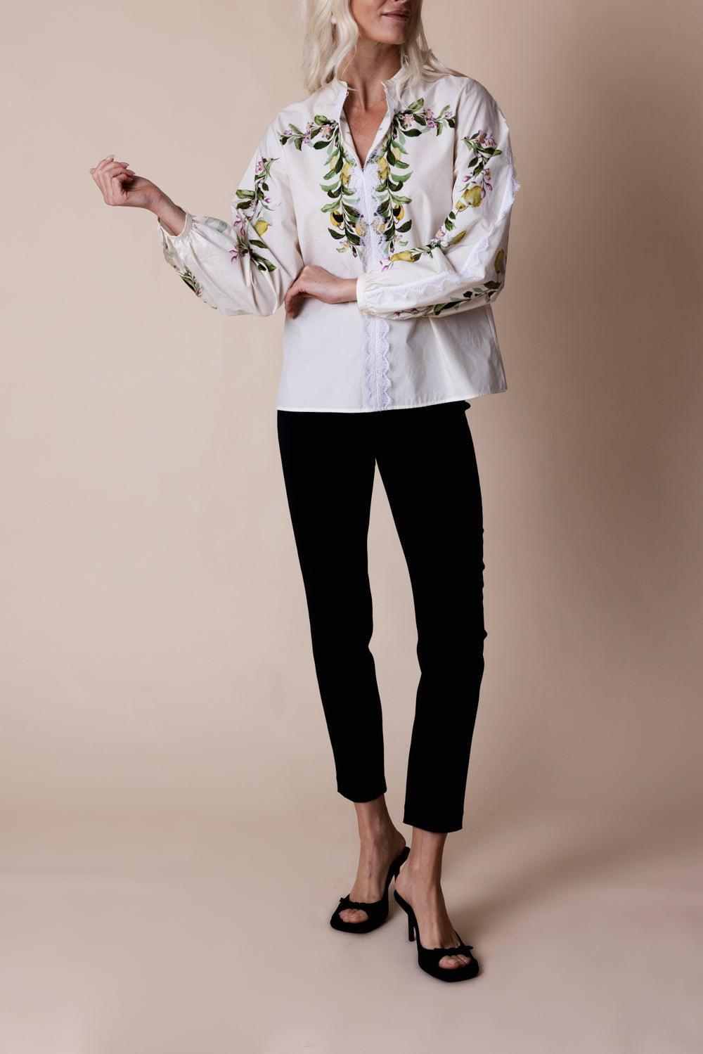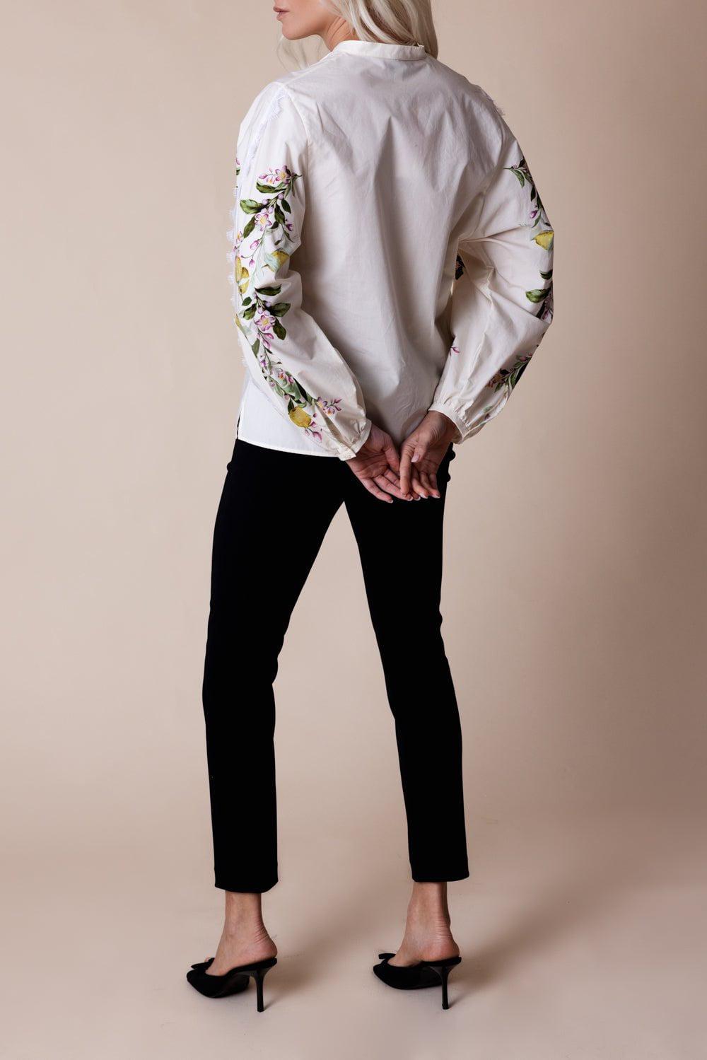 Giambattista Valli printed poplin blouse in ivory/yellow.