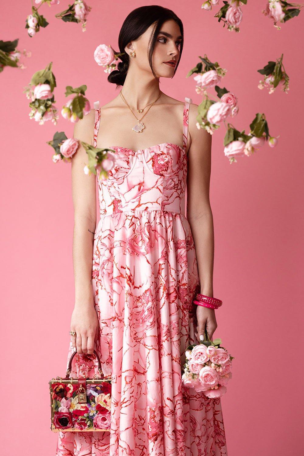 Giambattista Valli printed poplin midi dress in rose/red.