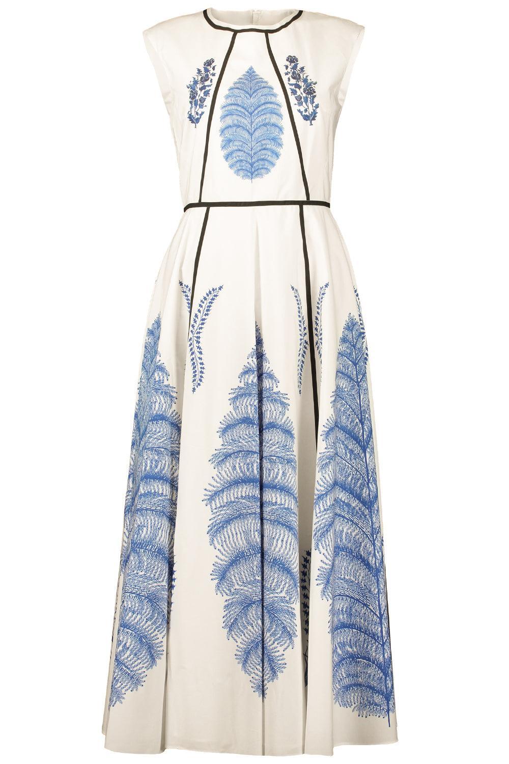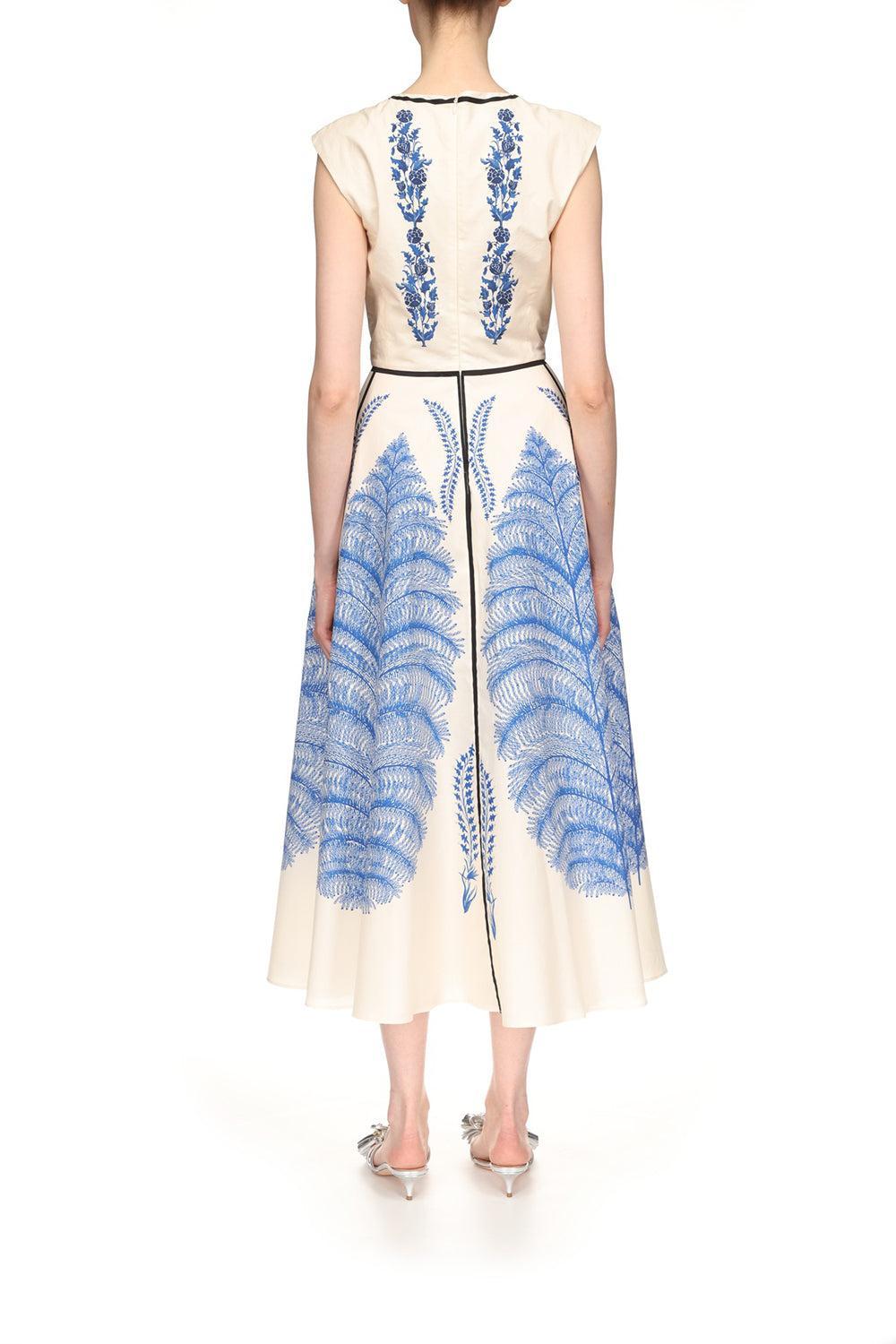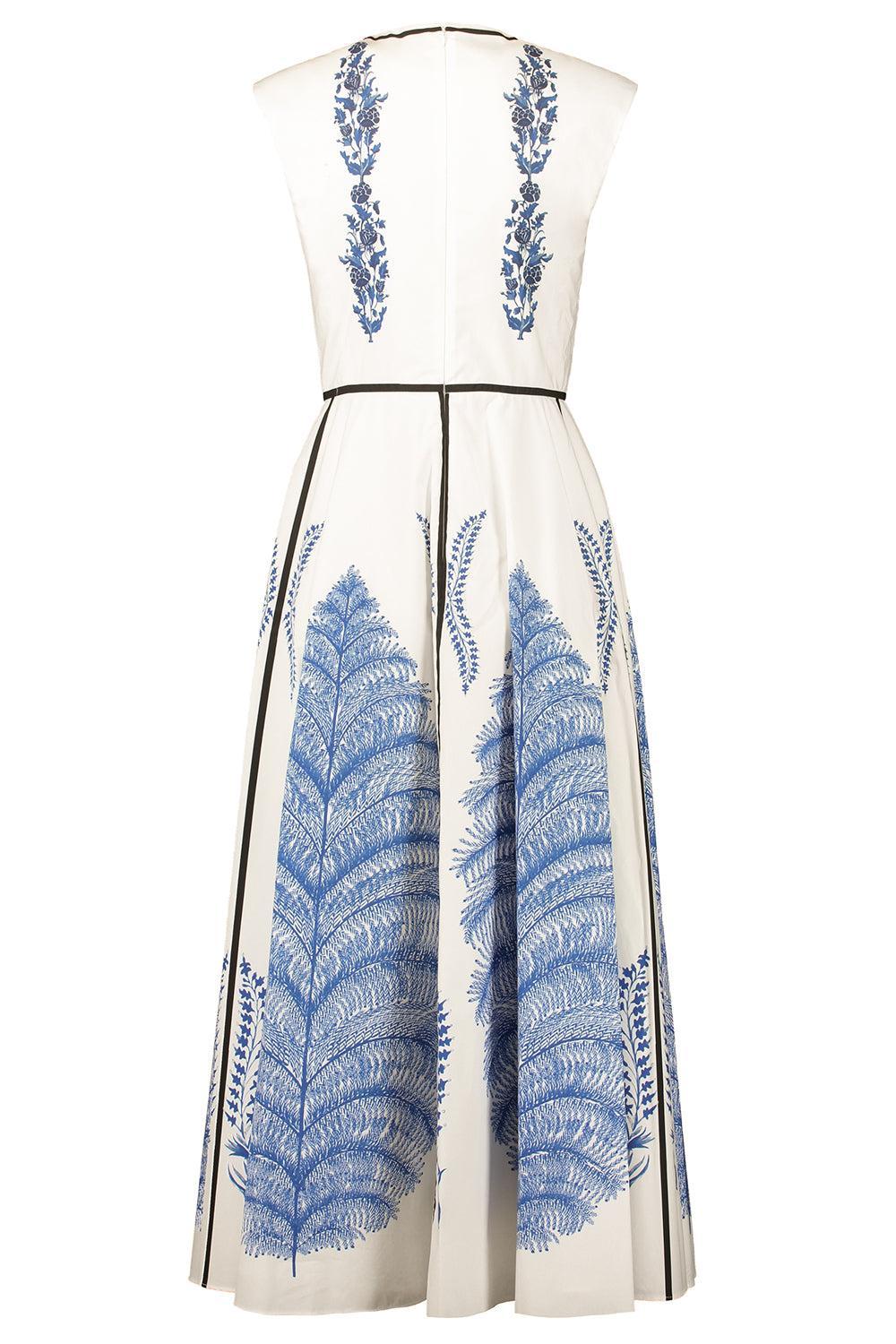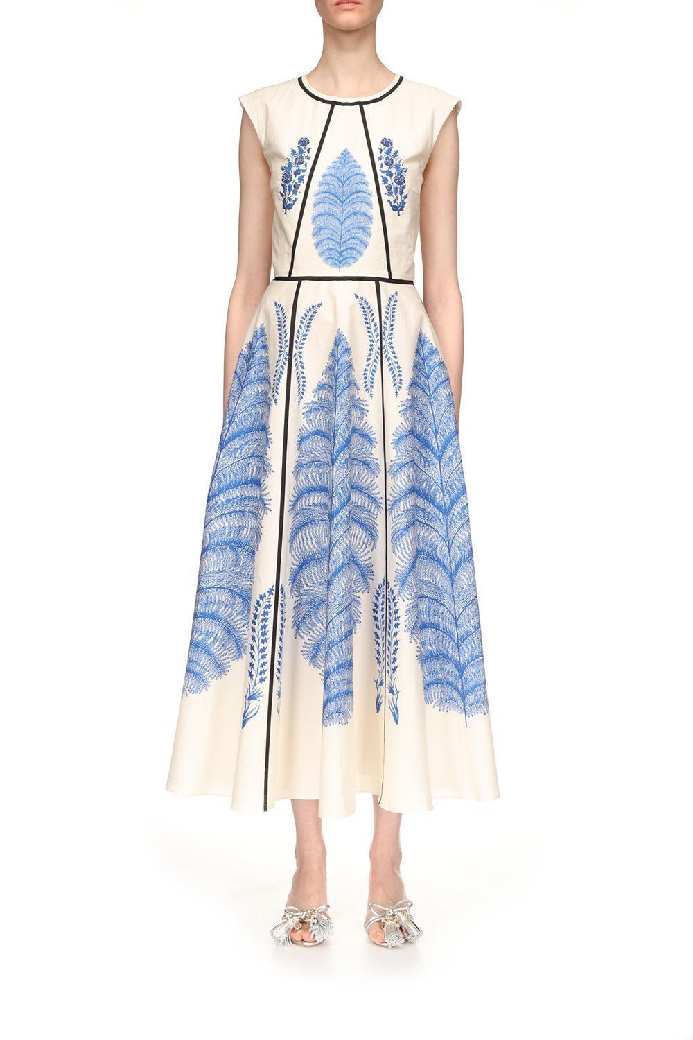 Giambattista Valli sleeveless printed poplin dress in ivory/blue.