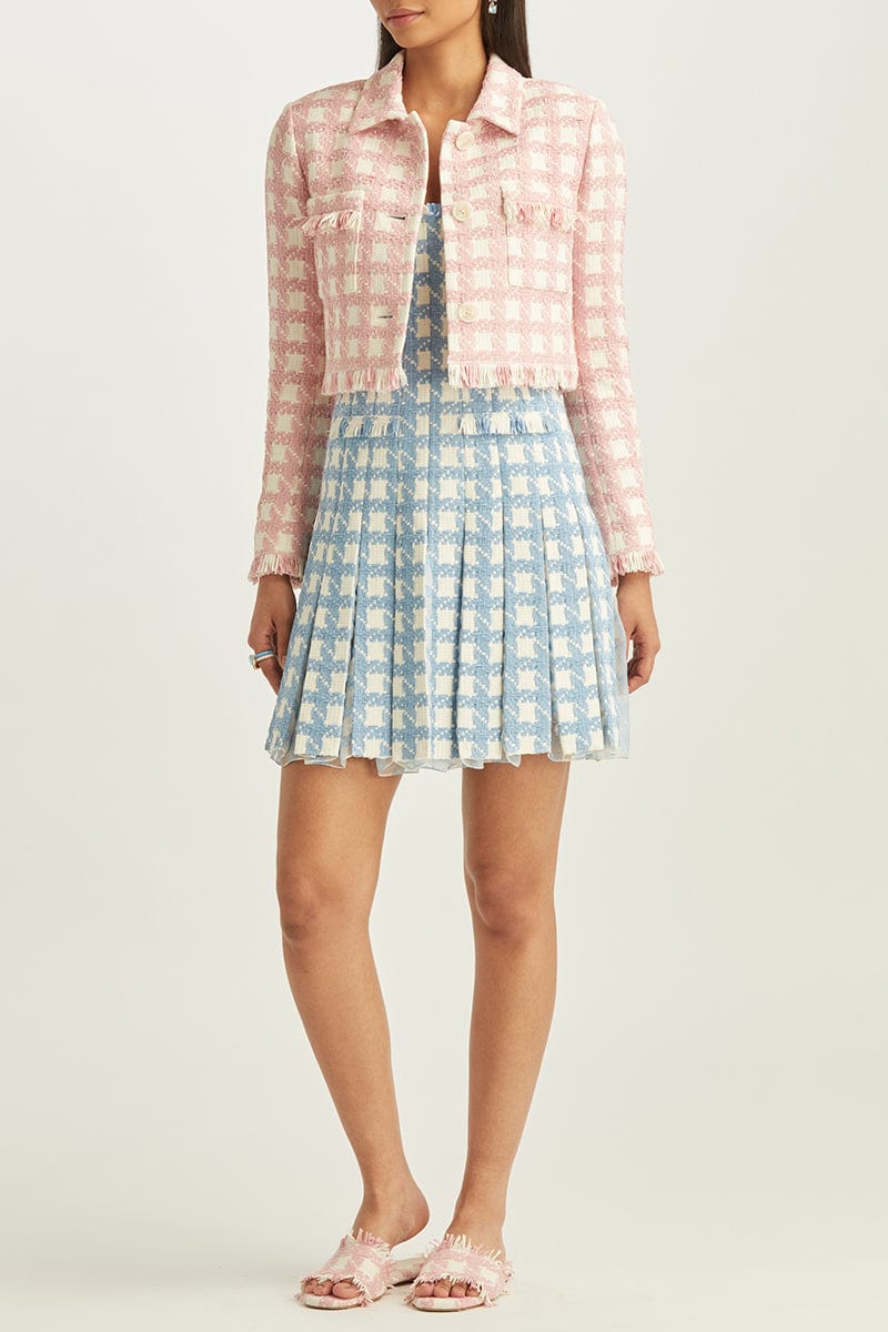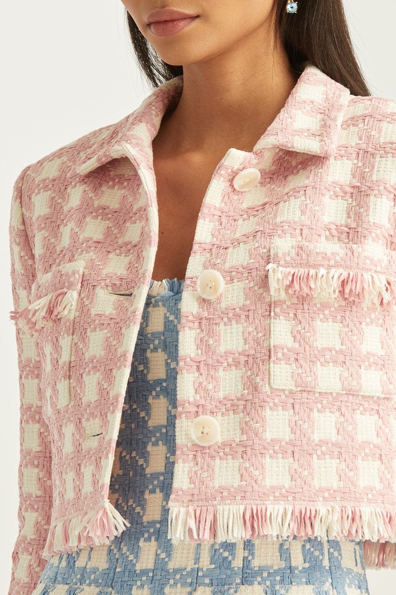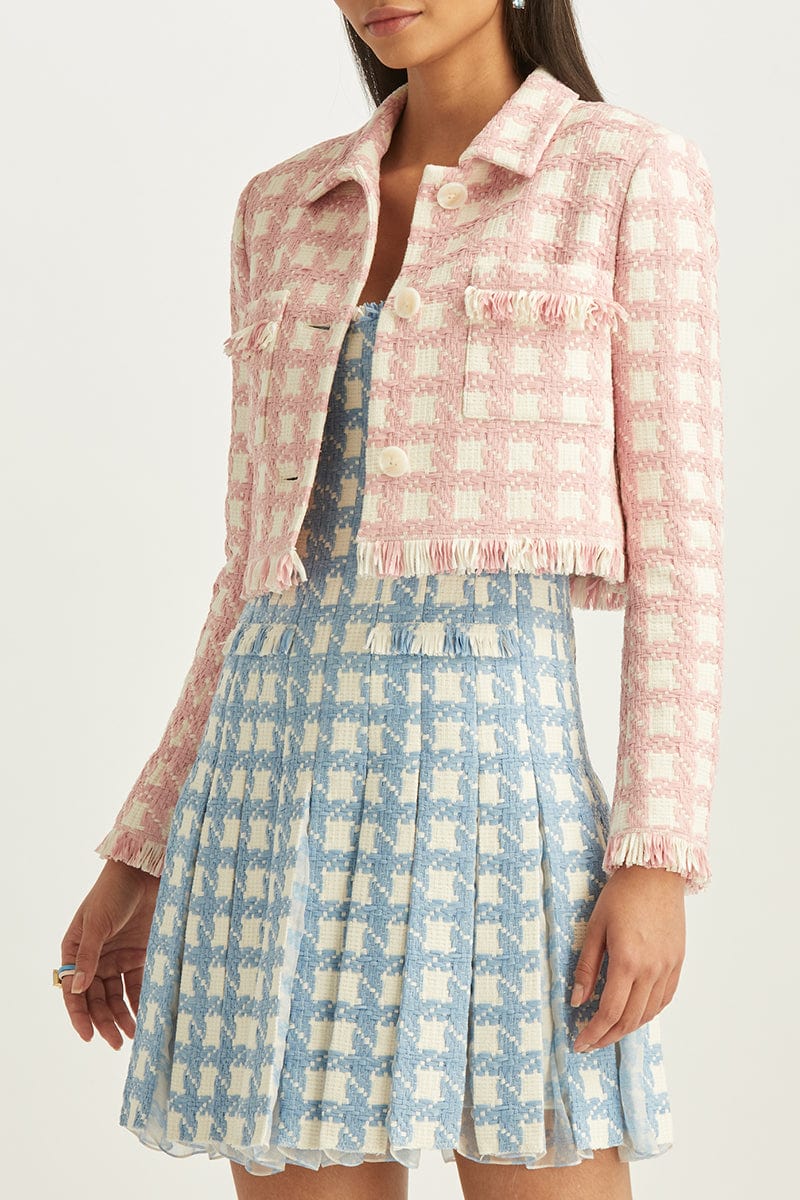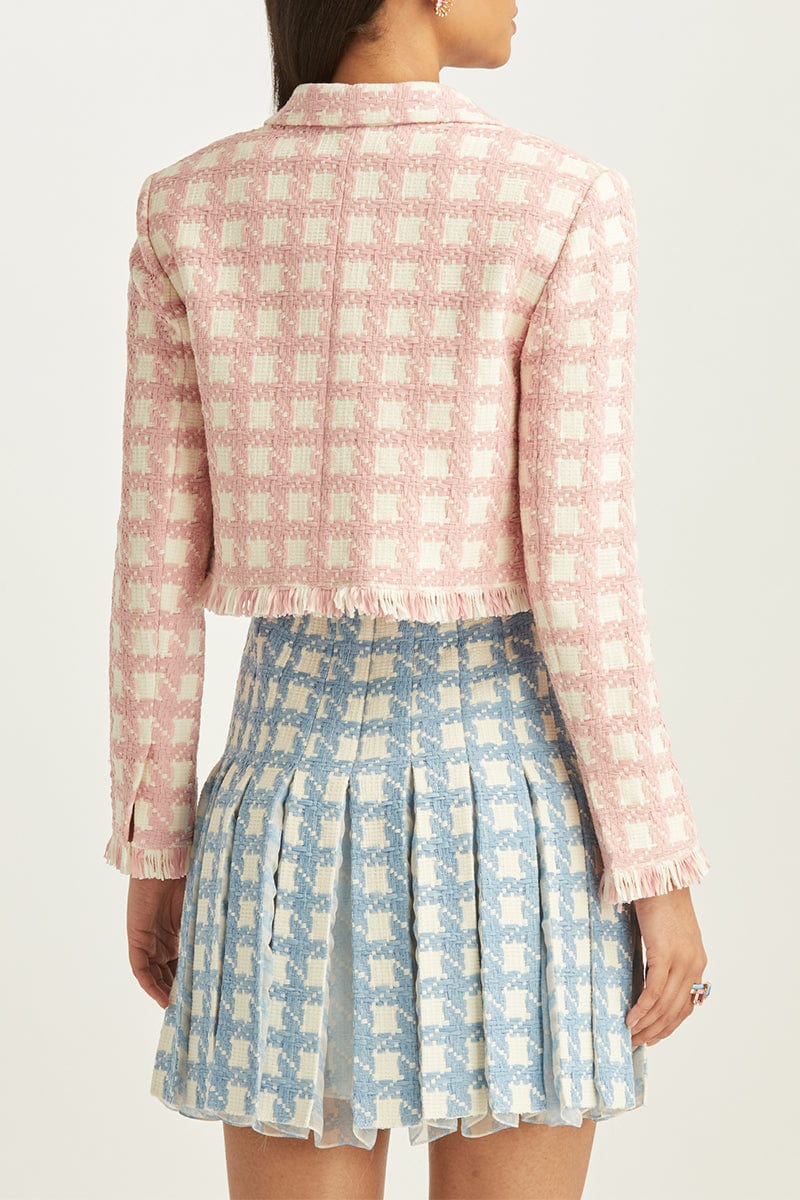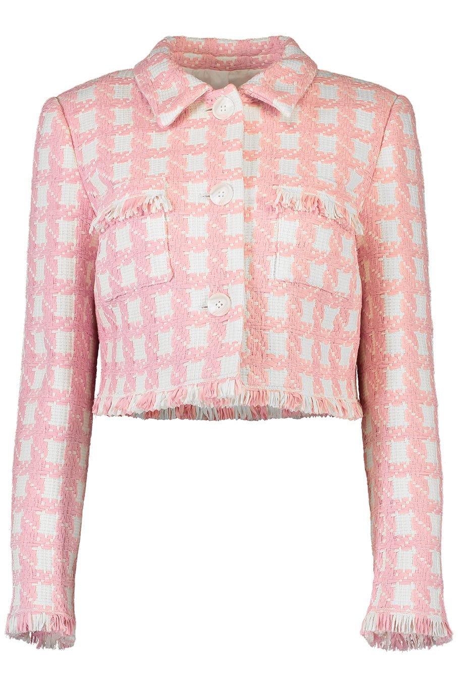 Oscar De La Renta gingham tweed cropped jacket in ivory pink.