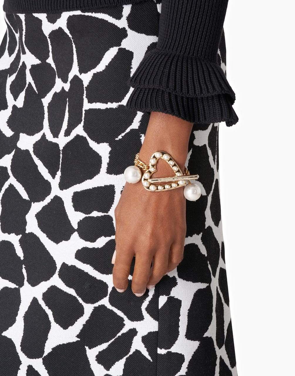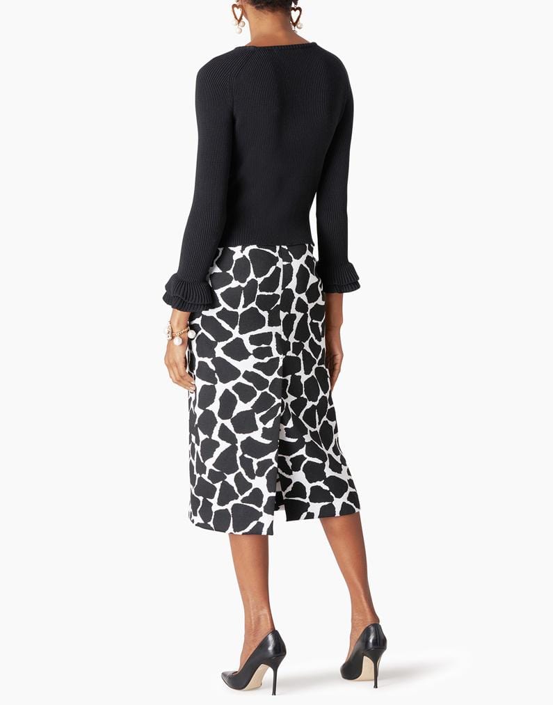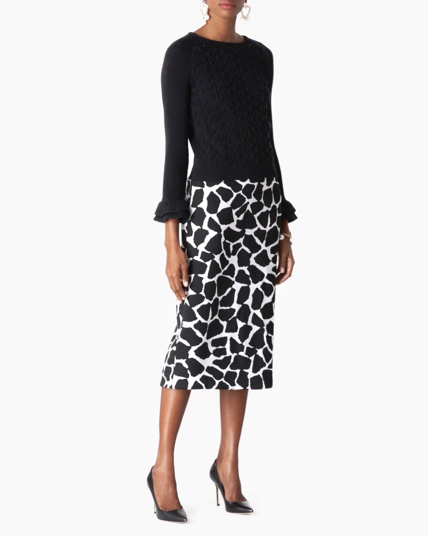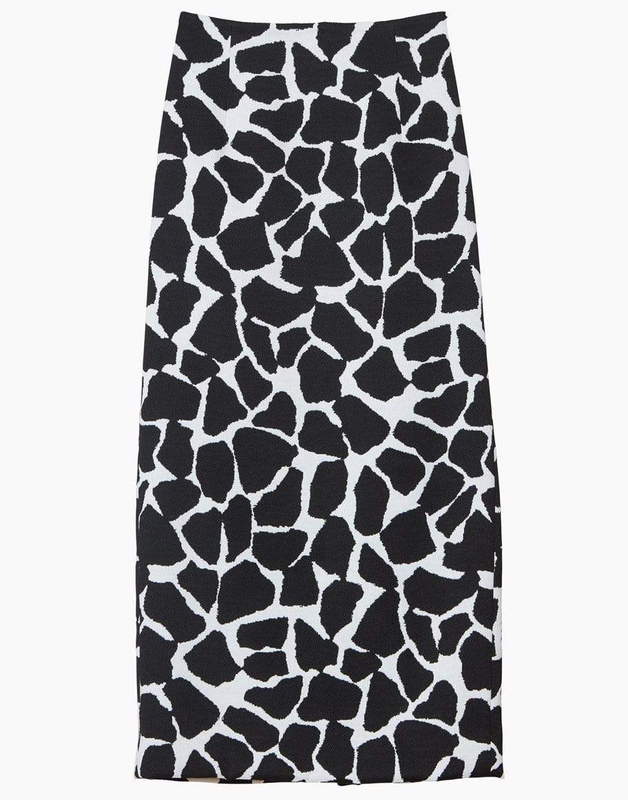 Carolina Herrera pencil skirt in black and white with woven giraffe jacquard print.