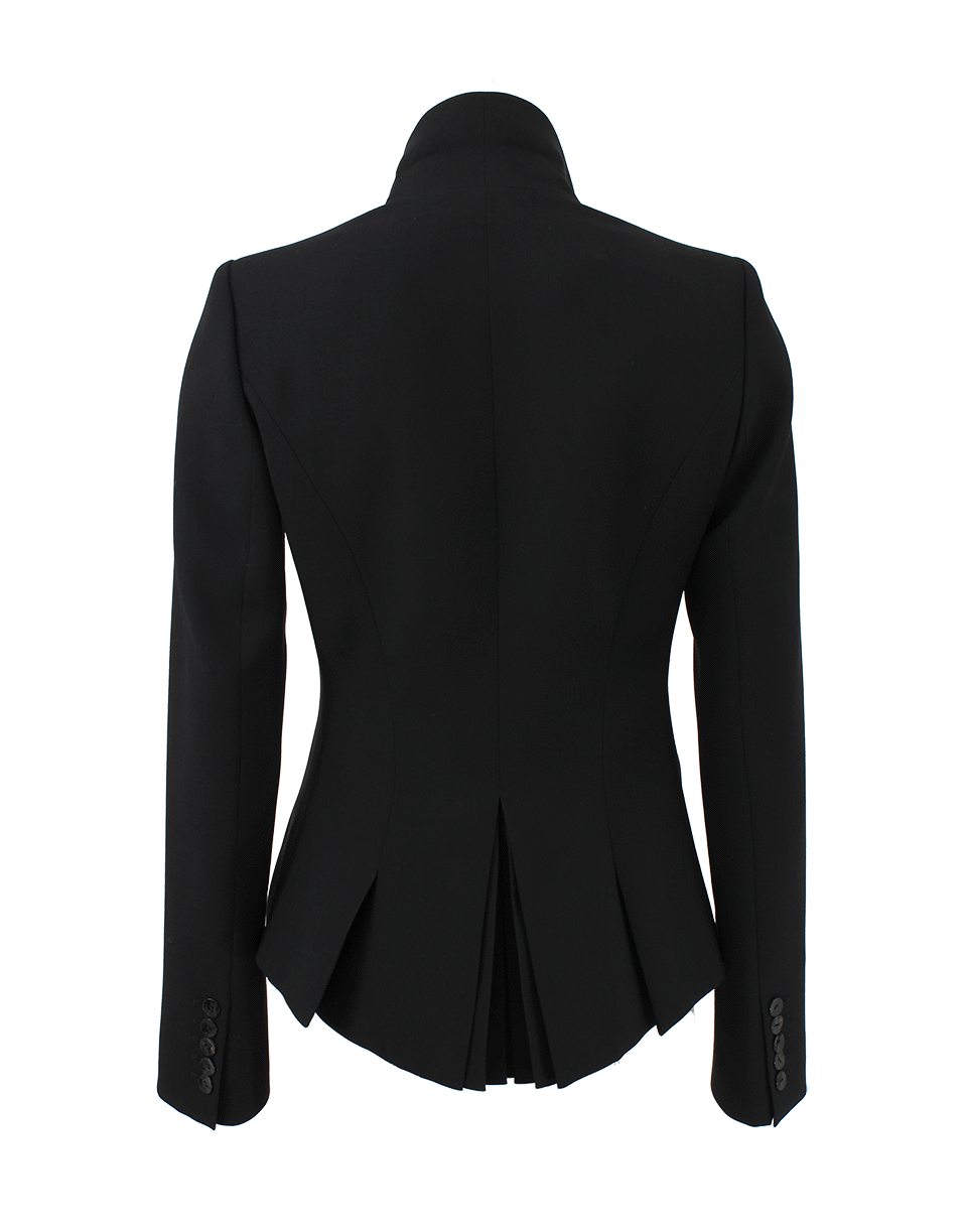 Double Breasted With Two Button Front Closure, Peak Lapels, Padded Shoulders, And Buttoned Cuffs