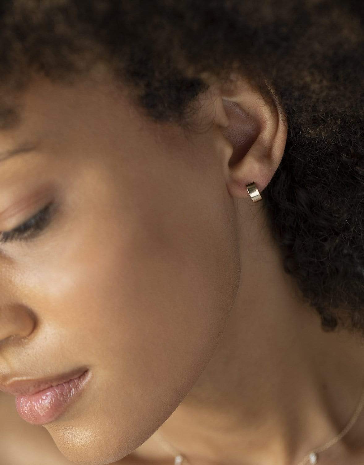 EF Collection jumbo huggie earrings. Our gold jumbo huggie earring is comprised of 14k solid gold.