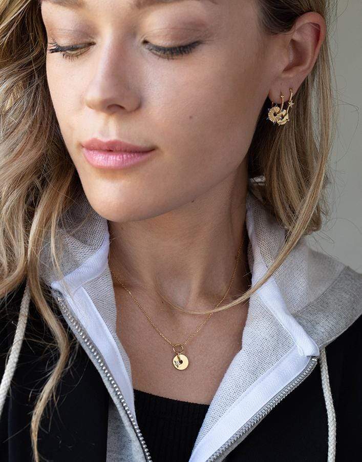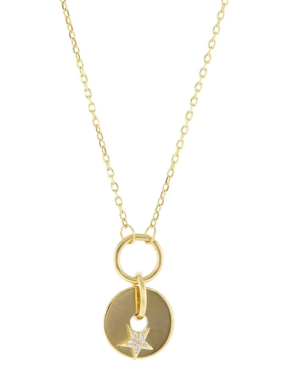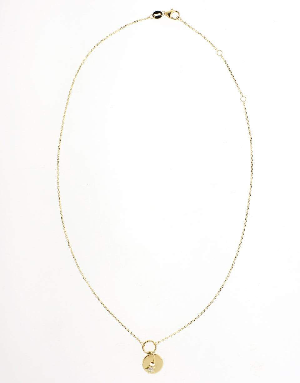 Foundrae diamond star gold disk necklace. Strength is within. We all have it, but sometimes it wanes, and sometimes we really need to call on it. The Strength collection reminds us that it is there. The star represents energy & divine guidance. There is no strength without direction.