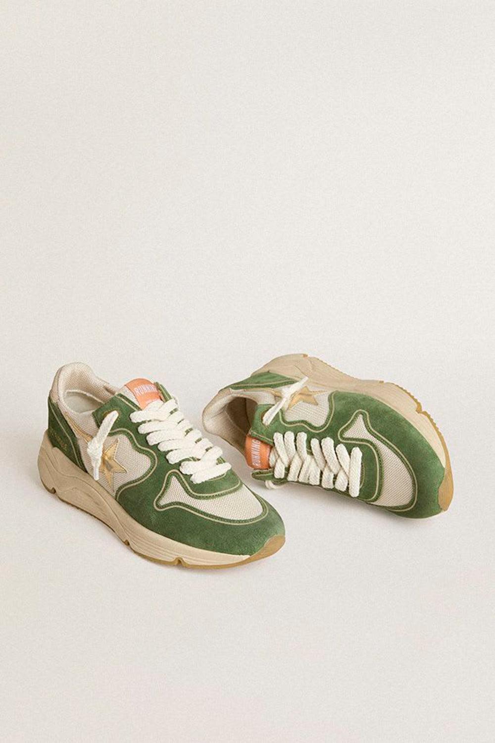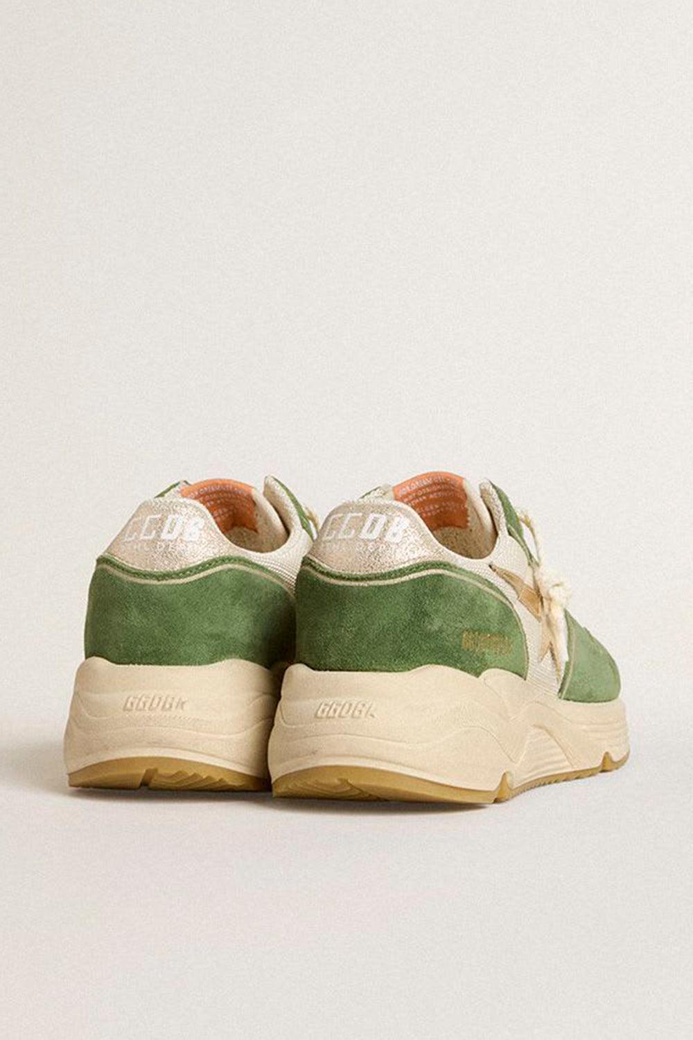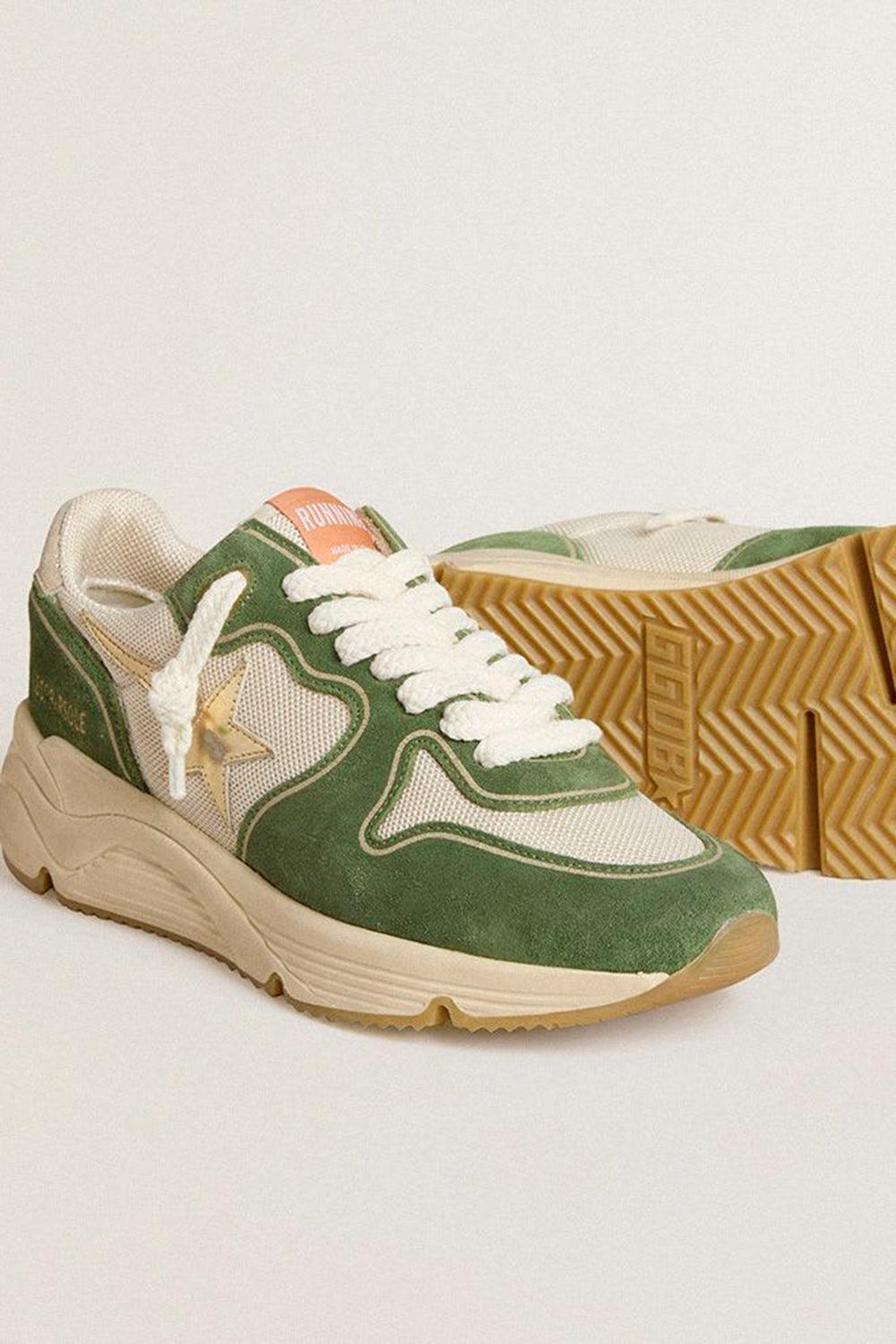 Golden Goose running sole star sneaker in cream/green/platinum.