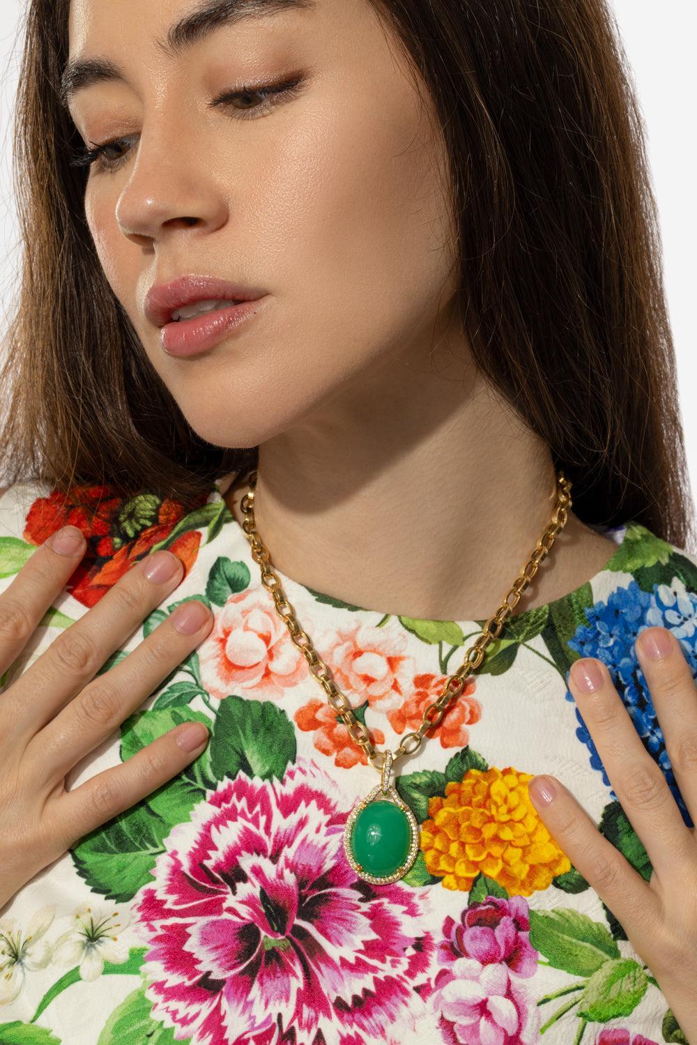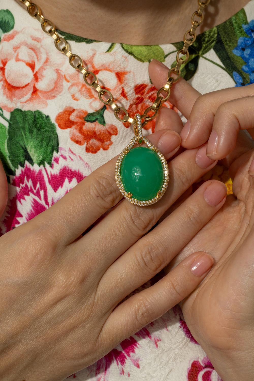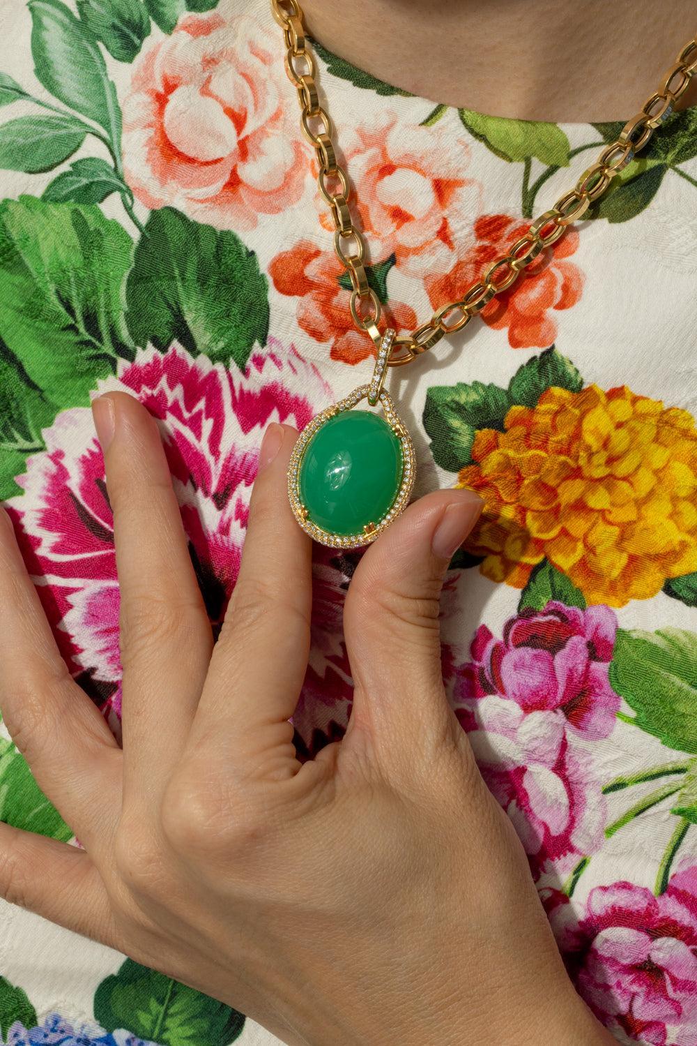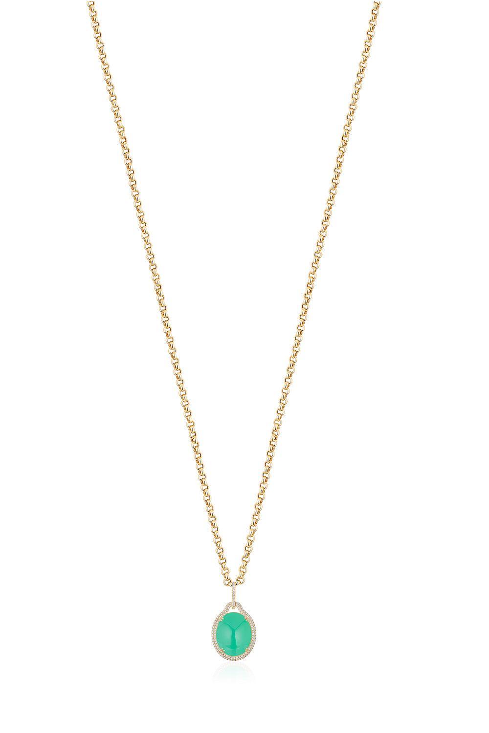Goshwara chrysoprase diamond pendant necklace in yellow gold.