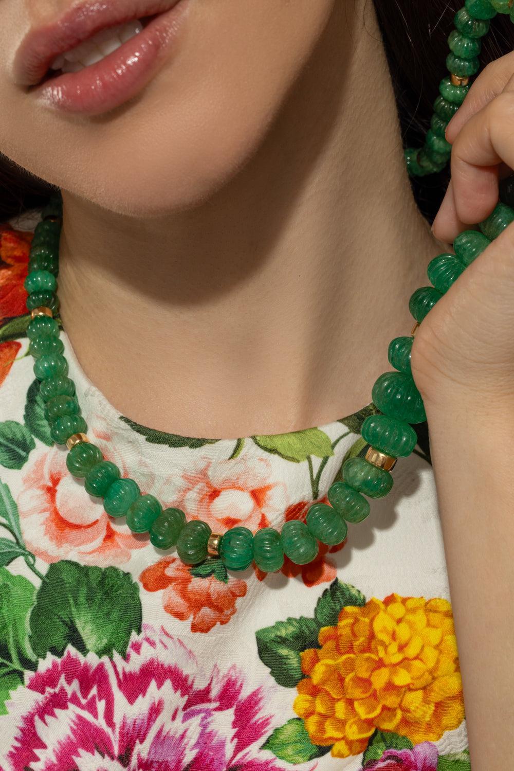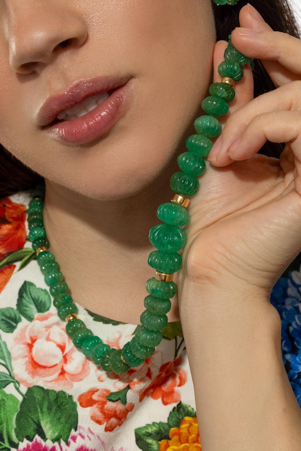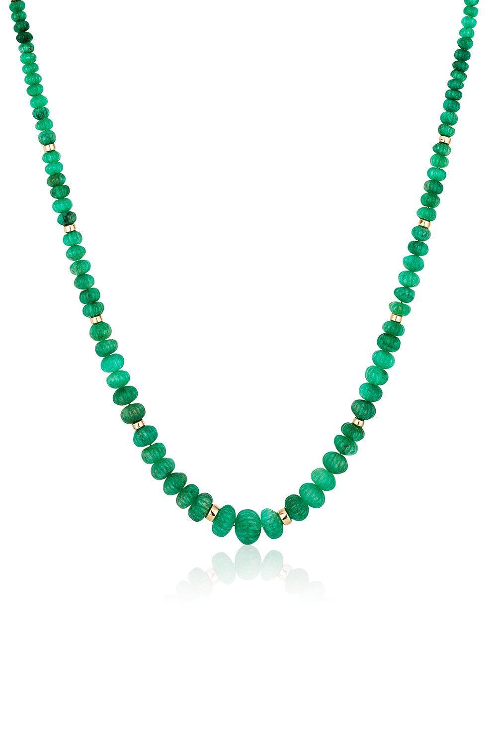 Goshwara emerald fluted beads g-one necklace in yellow gold.