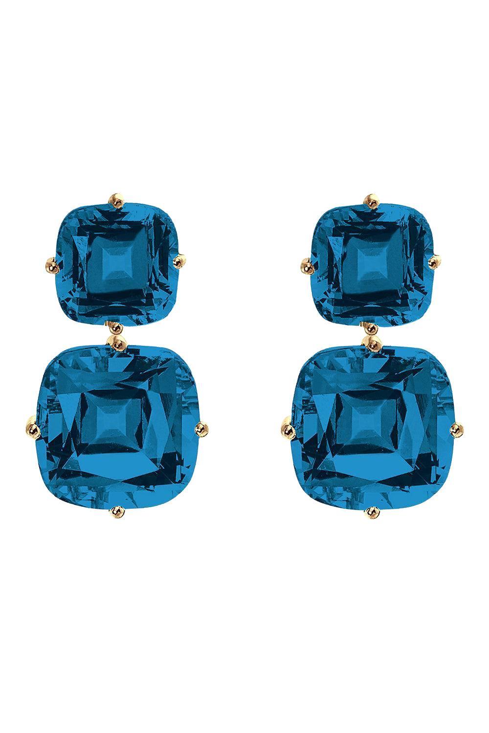 Goshwara london blue topaz two drop gossip earrings in yellow gold.