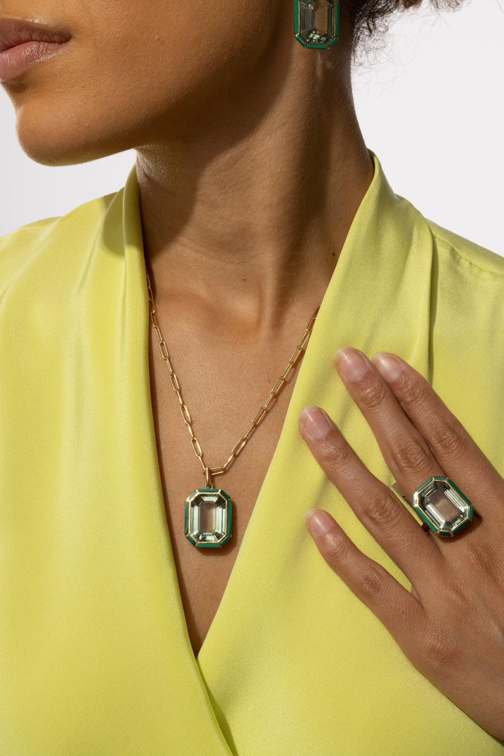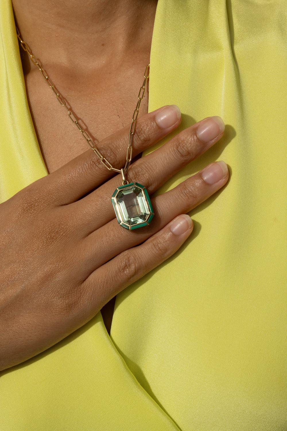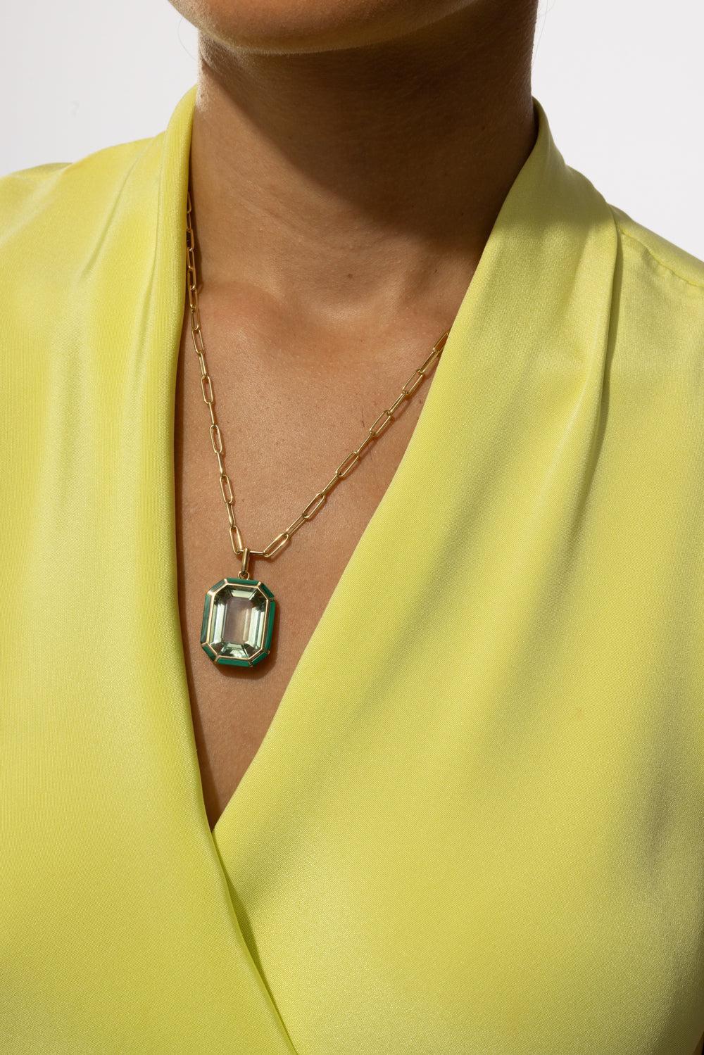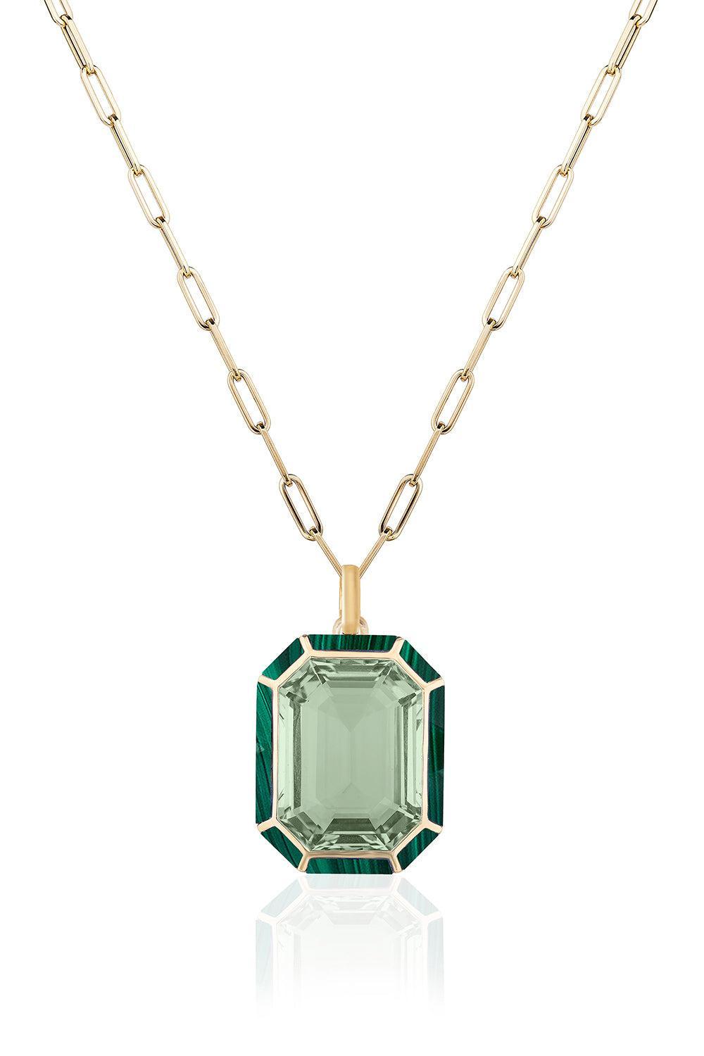 Goshwara malachite prasiolite melange necklace in yellow gold.