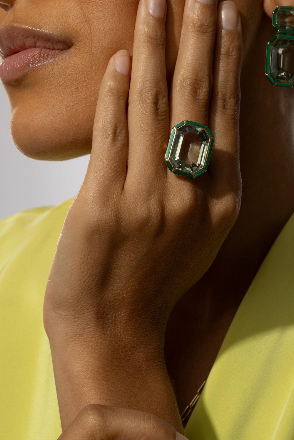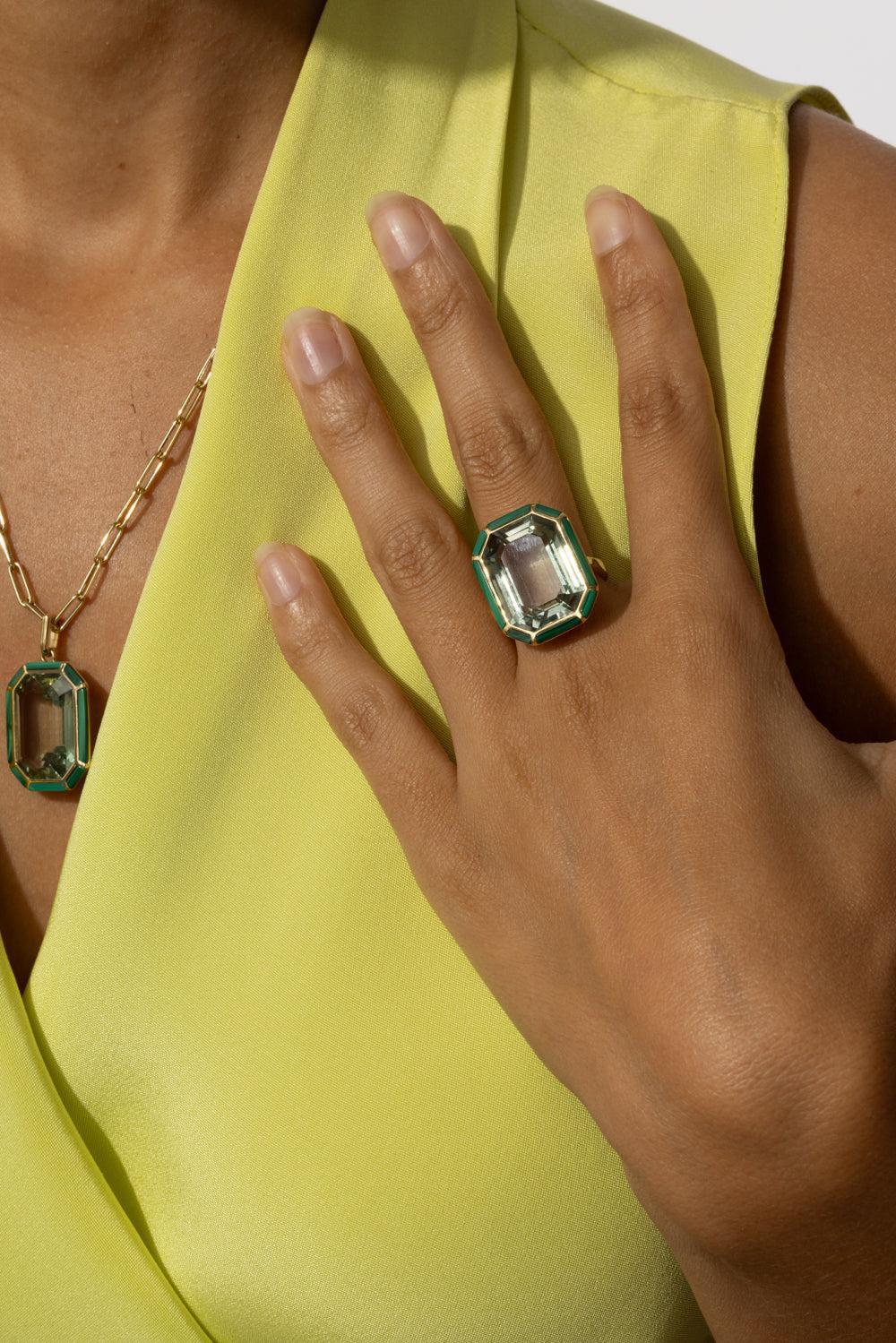 Goshwara malachite prasiolite melange ring in yellow gold.