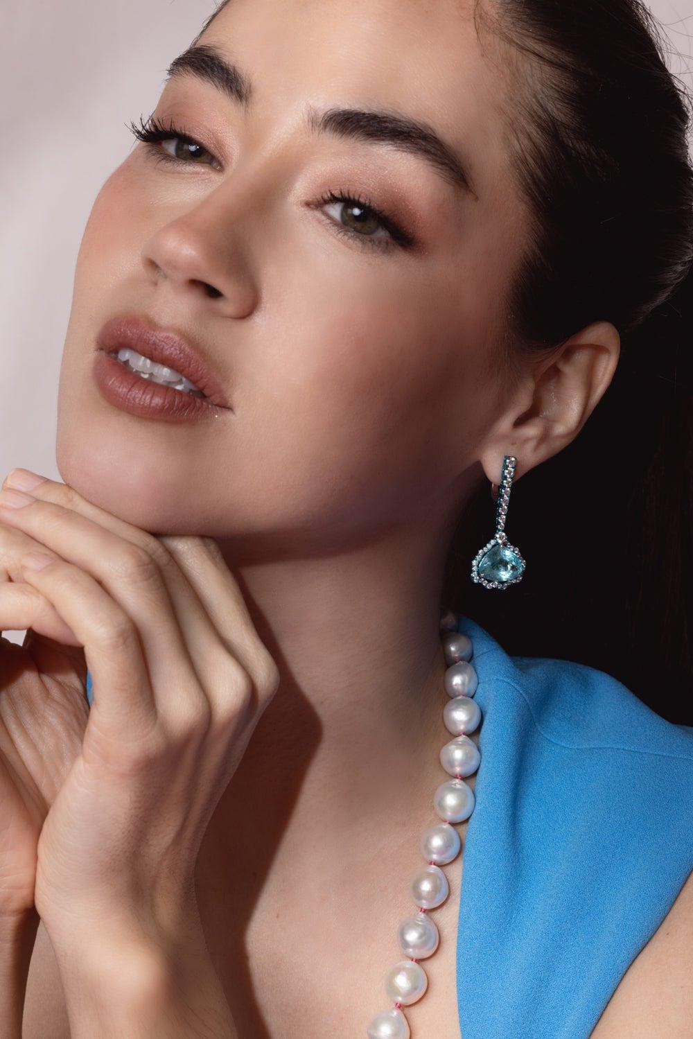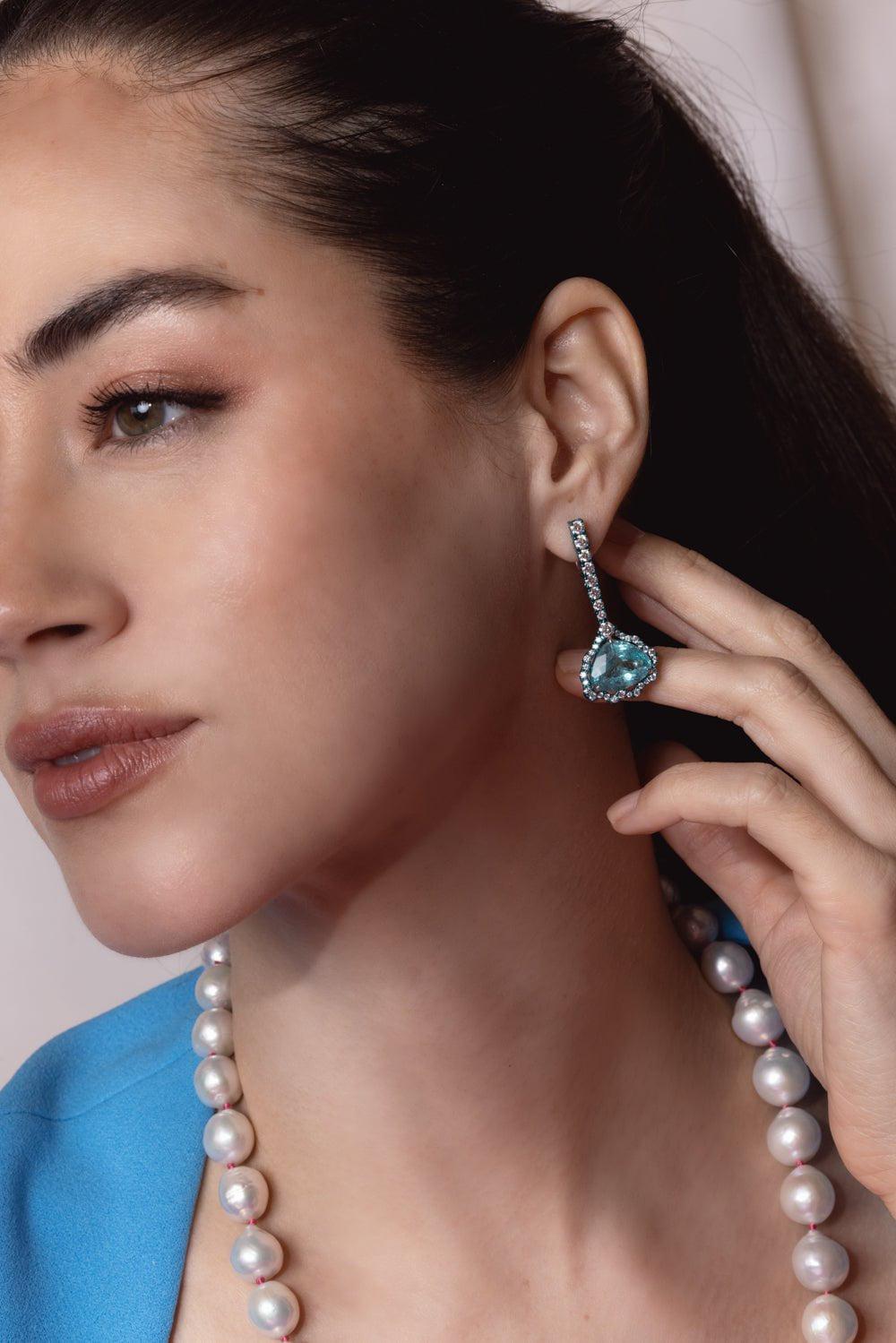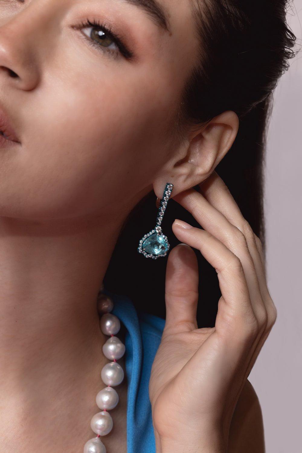 Graziela paraiba tourmaine diamond earrings in white gold.