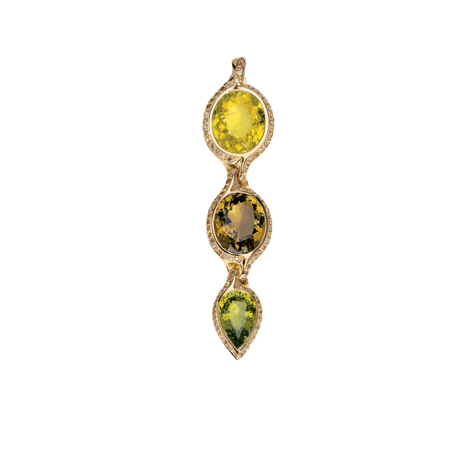 Green Tourmaline Diamond Pendant Sometimes they say three is a crowd, but in the case of Tamara Comolli’s green tourmaline diamond pendant it is just right.