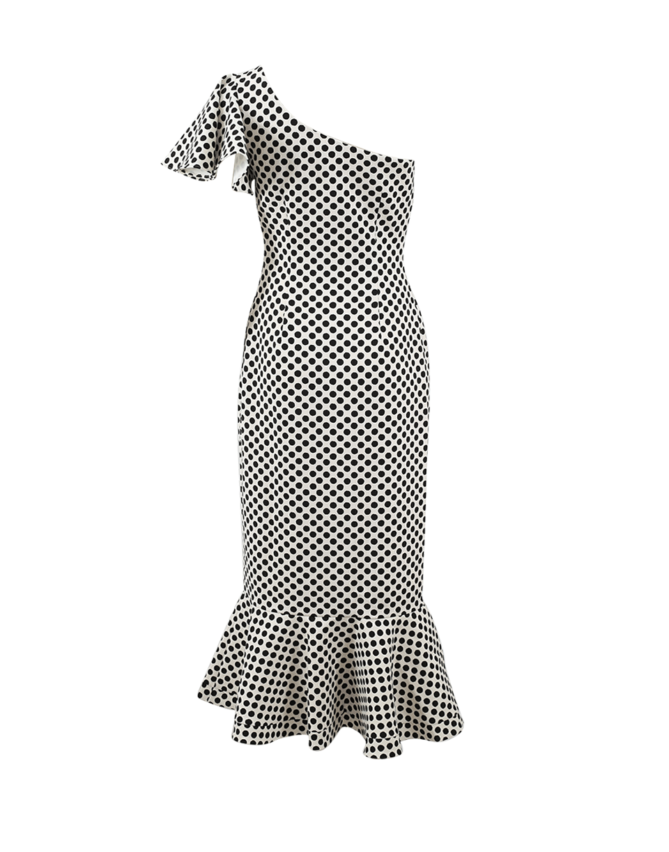 One Shoulder Neckline With Side Zip Closure And Ruffled Sleeve