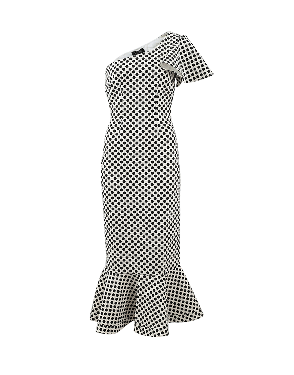 Flounce Hem With Slim Fitting Silhouette And Calf Length Cut