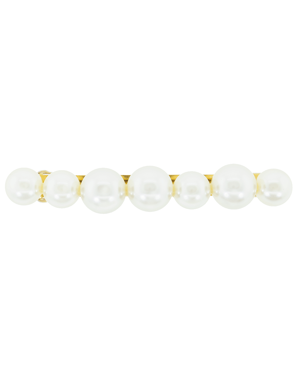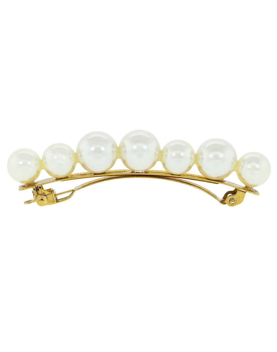 Jennifer Behr's Gretel barrette is designed with polished glass simulated Swarovski® pearls on gold-tone plated brass with a clasp closure.
