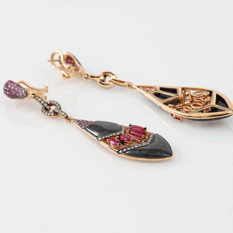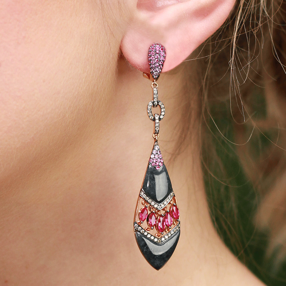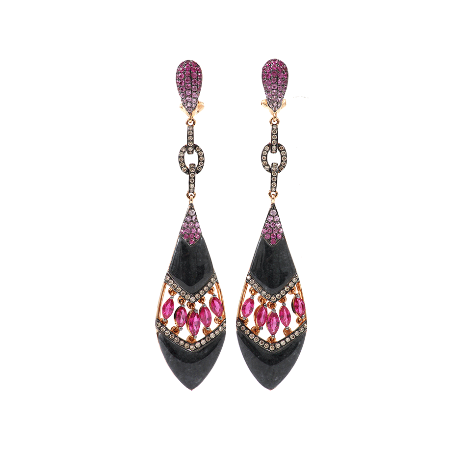 Grey Jade With Red And Pink Sapphires And Cognac Diamonds From Wendy Yue