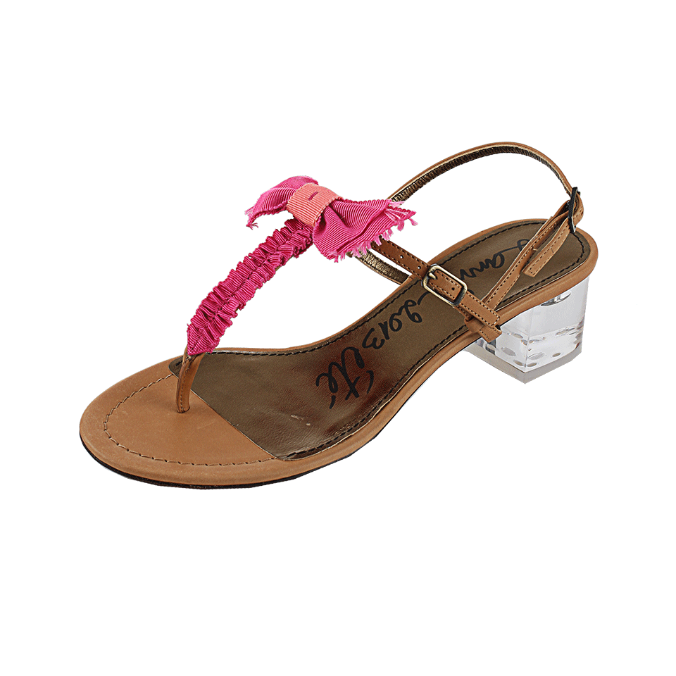 These gross grain ribbon sandals by Lanvin are the ideal springtime sandal. Featuring a girly bow that adds a sweet touch along with a chunky, lucite heel for a modern edge.