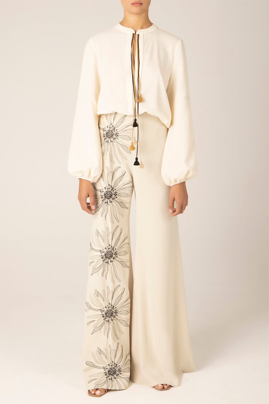Silvia Tcherassi grotte wide leg pant in cream wildflower.