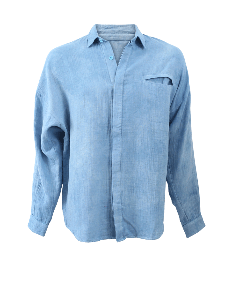 Spread Collar With Hidden Front Button Closures And Long Sleeves