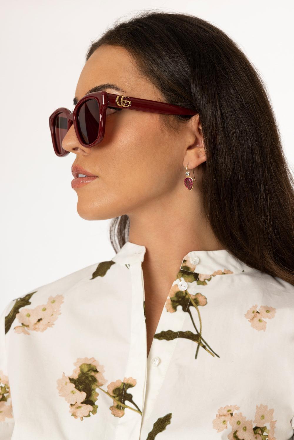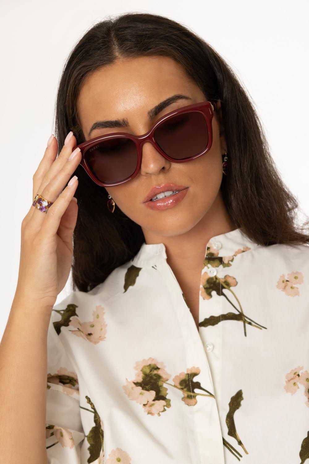 Gucci rounded square sunglasses in burgundy / red.