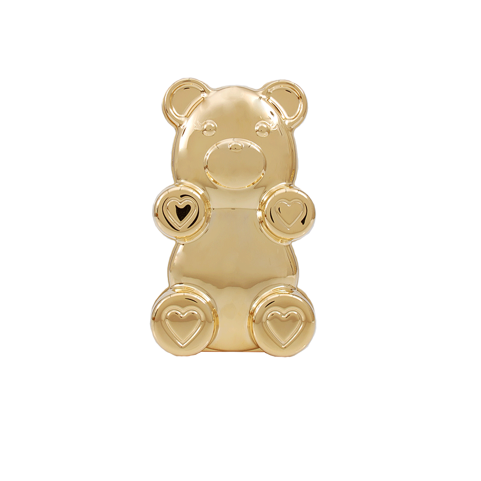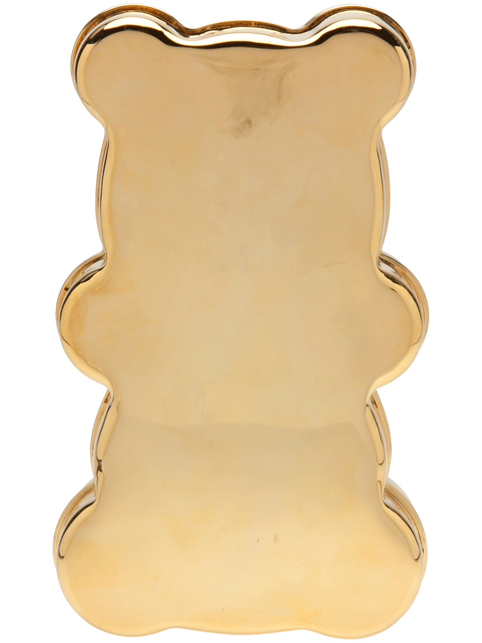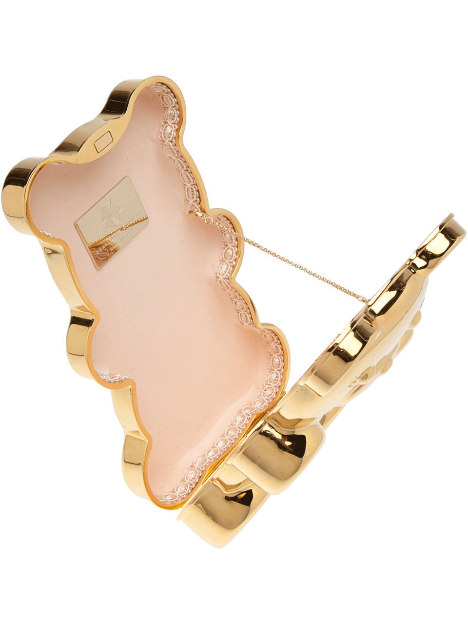Give your look a conversational element in gold glitz and tuck away all of your evening necessities in Charlotte Olympia's gummi bear clutch.