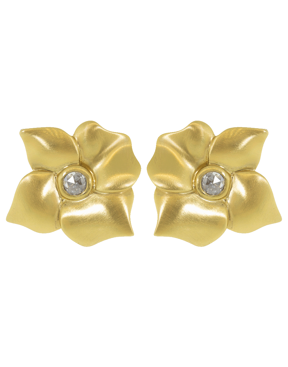 18k yellow gold hail storm fiore flower studs with a diamond center from Sorellina. For pierced ears.