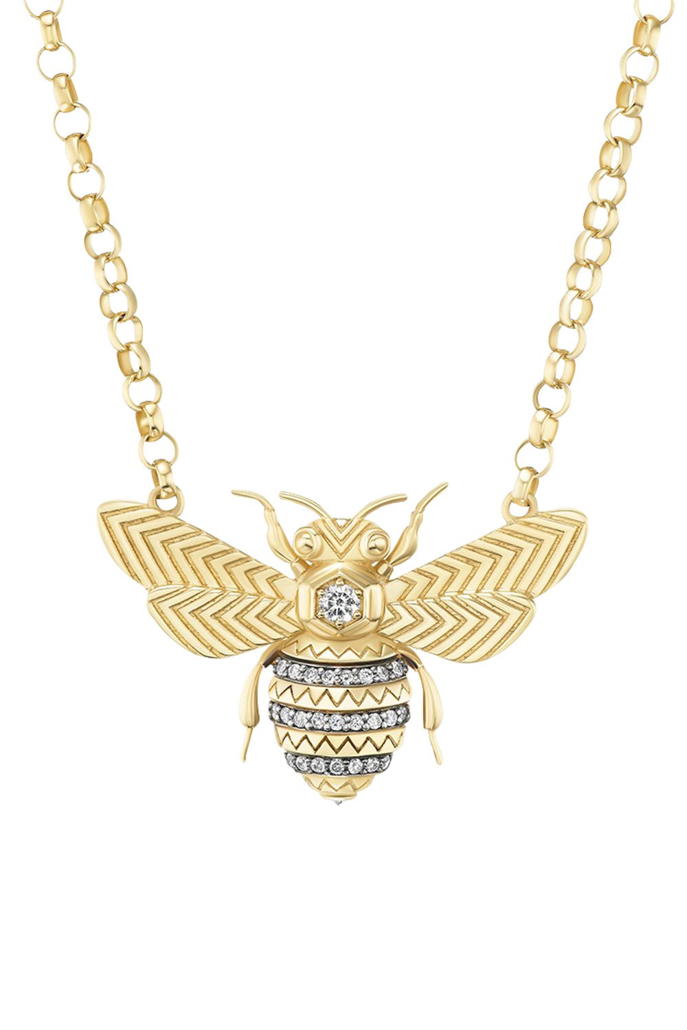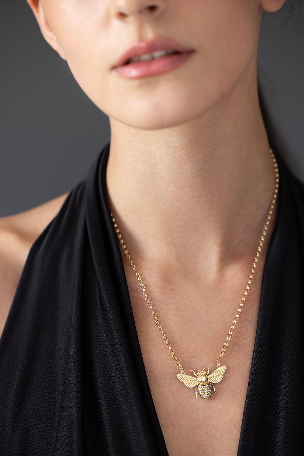 Harwell Godfrey mini bee pendant necklace in yellow gold.