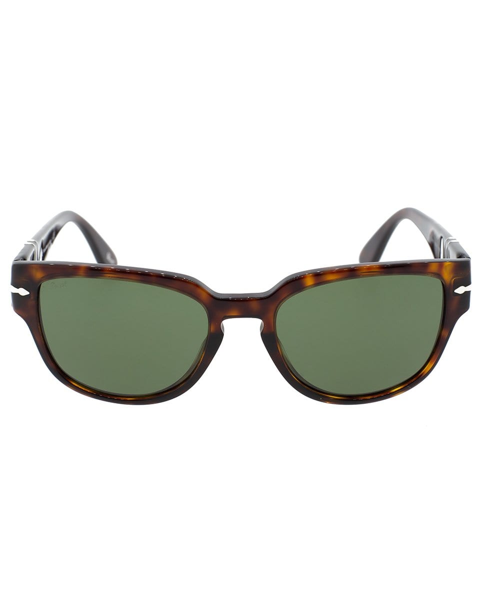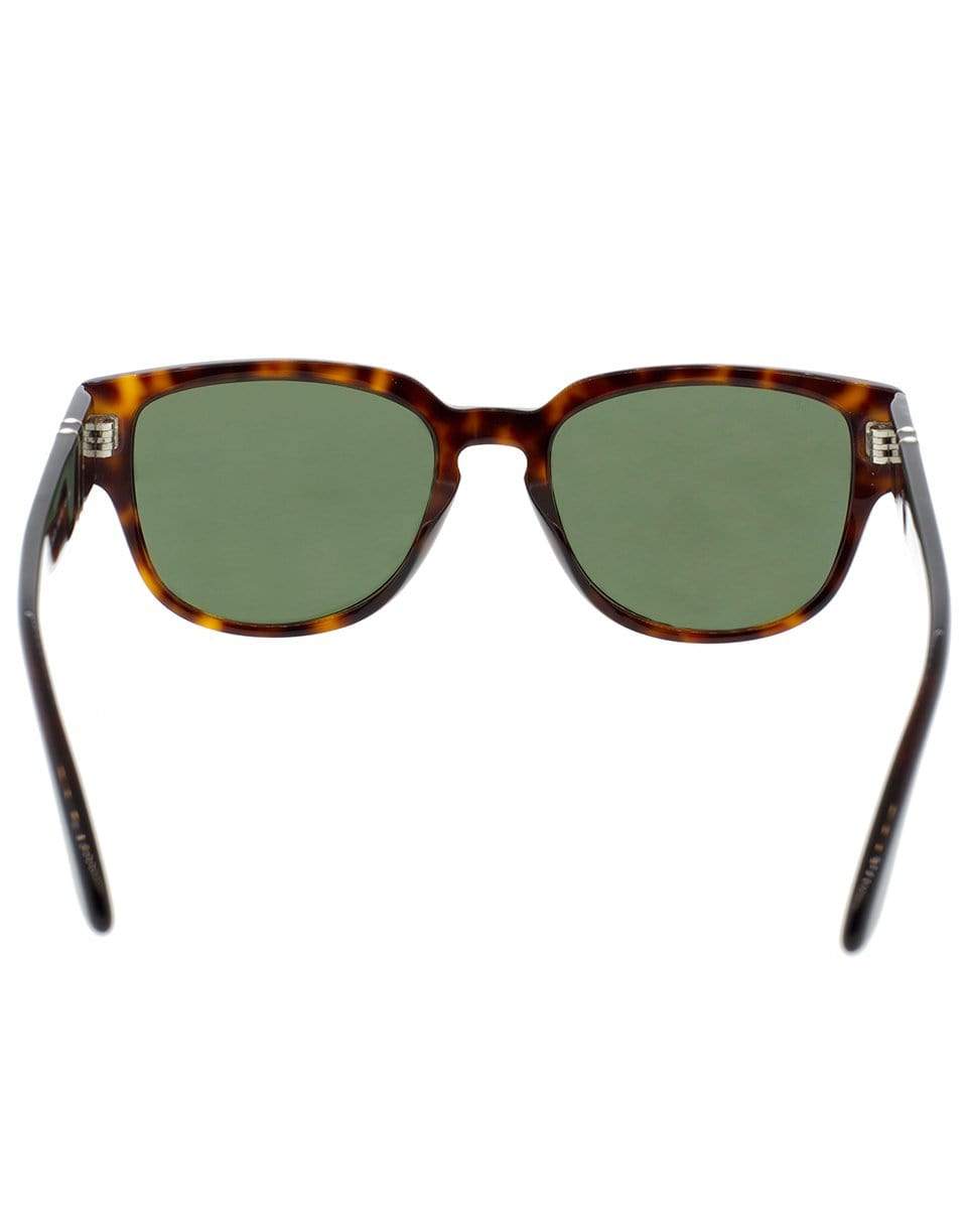 Square tortoise shell acetate sunglasses with green lenses for men.