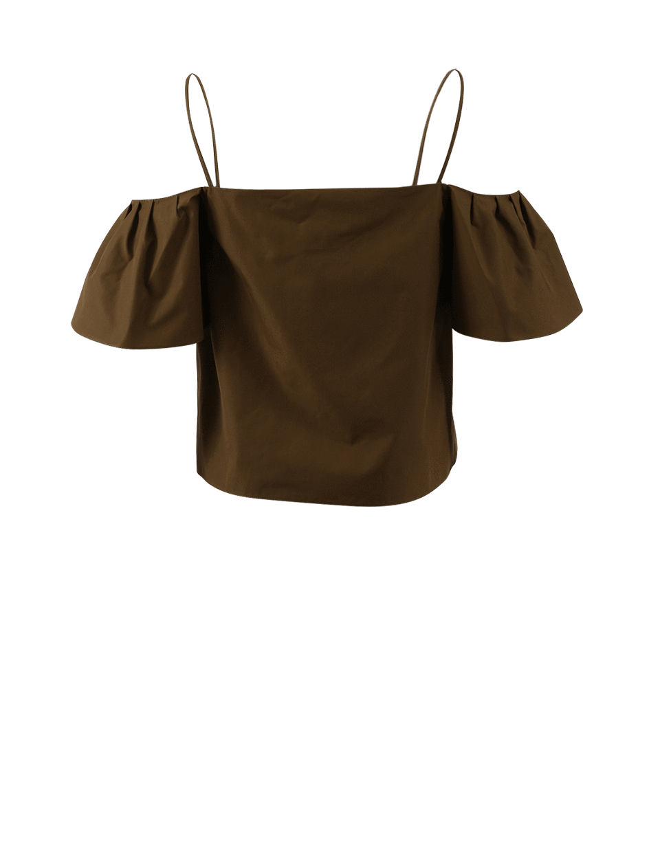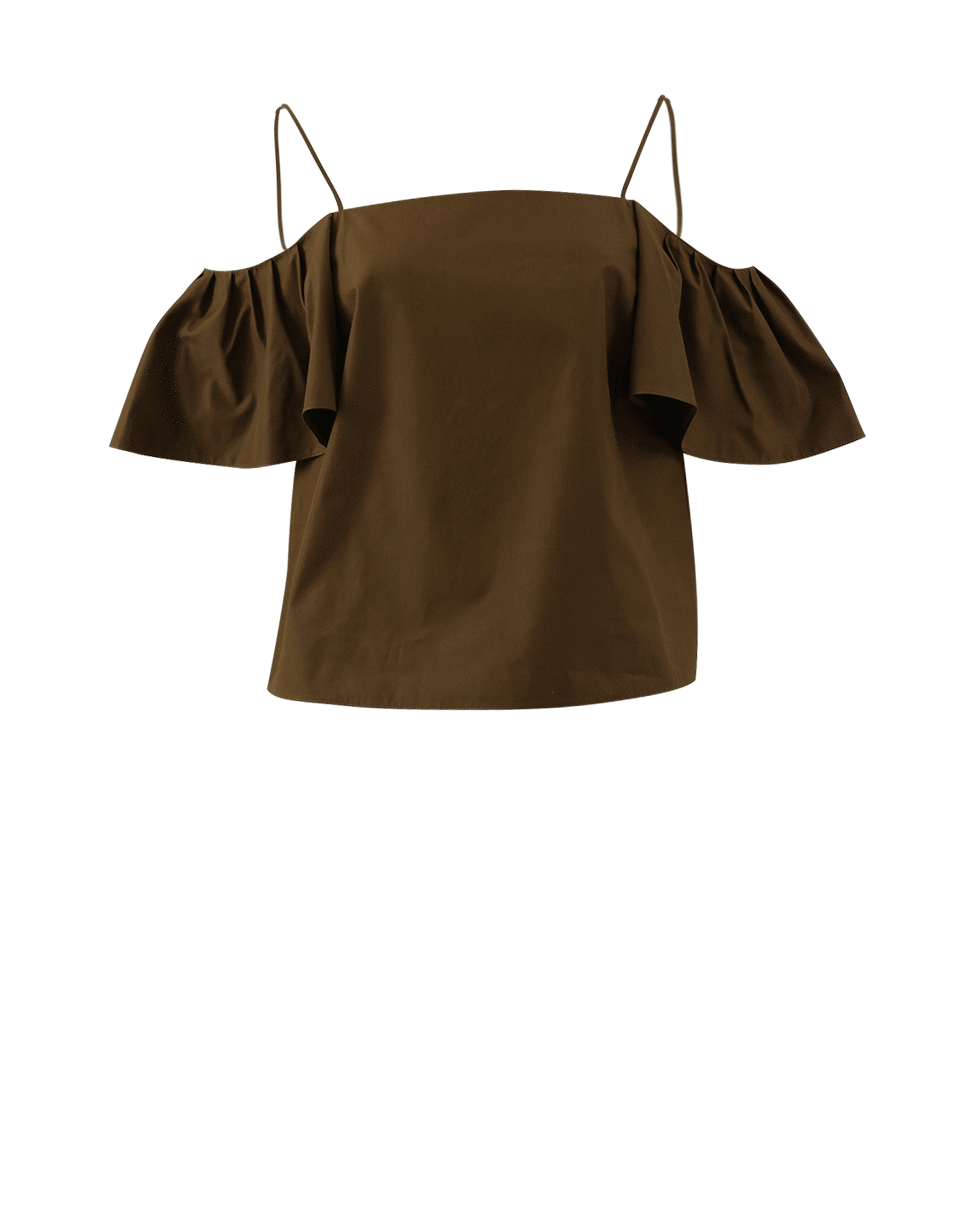 Off Shoulder Neckline With Spaghetti Straps And Ruffled Sleeves
