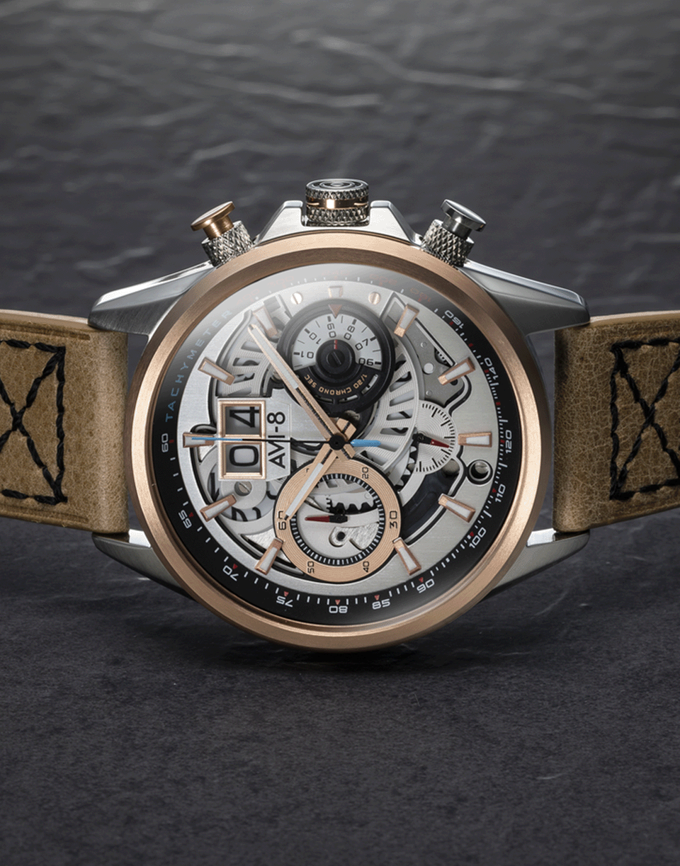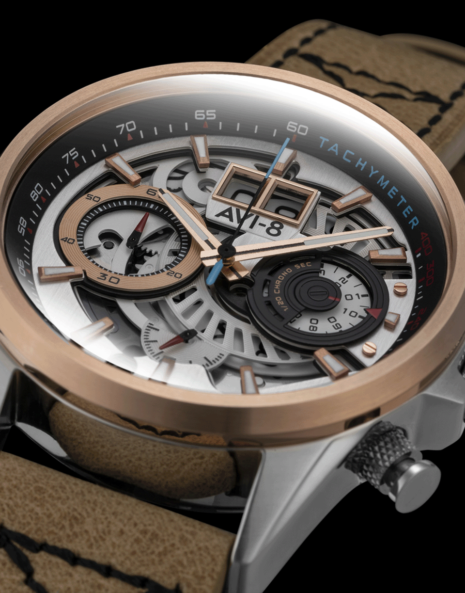 The Hawker Harrier II by Ballast 1903 is the luxurious timepiece you have been waiting for. Featuring a comfortable and snug brown leather strap with military influenced cross-stitch, Japan Quartz chronograph with 1/20 sec and big date movement, a silver white dial, and a 44mm round stainless-steel case.