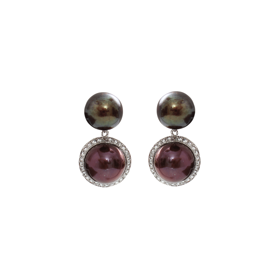 Heilos Black And Chocolate Pearl Earrings With Diamonds From Nicholas Liu