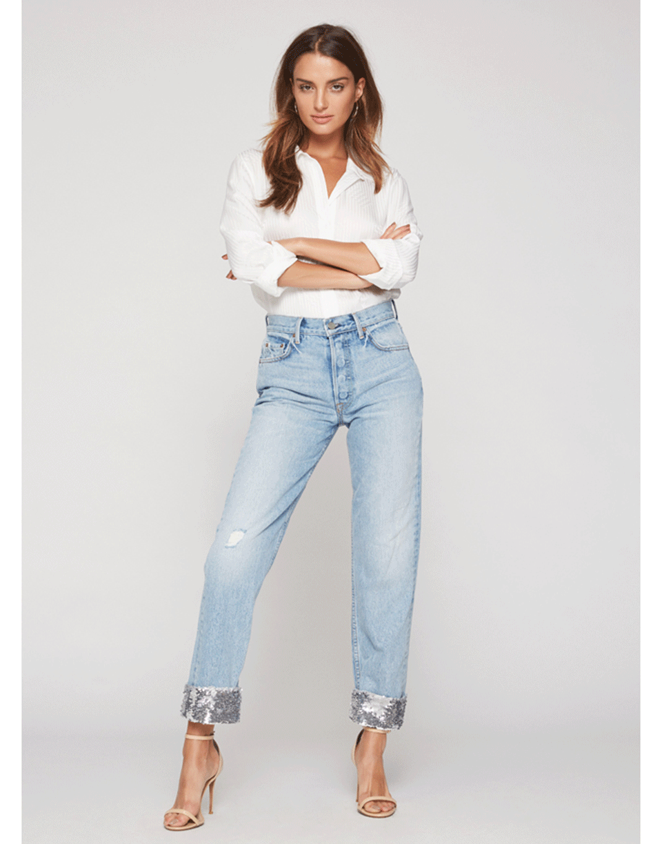 Sequin Cuff Leg With Loose Fitting Silhouette And Ankle Length Cut