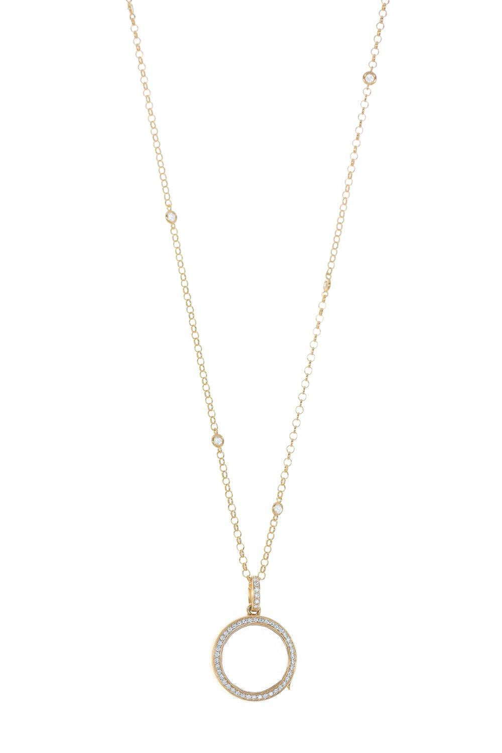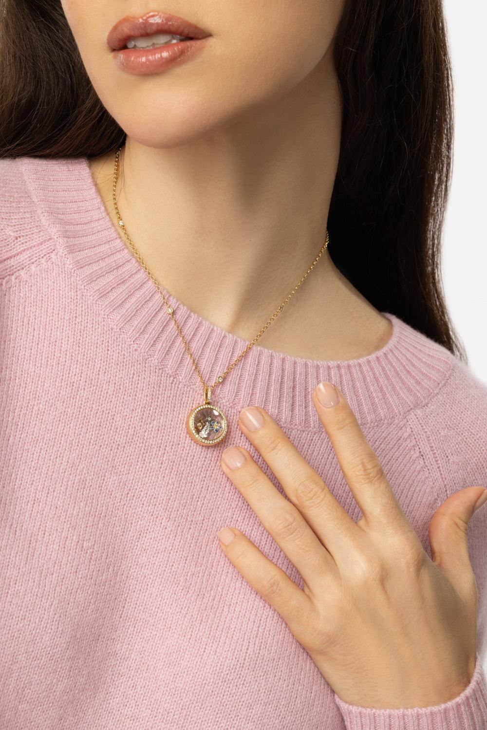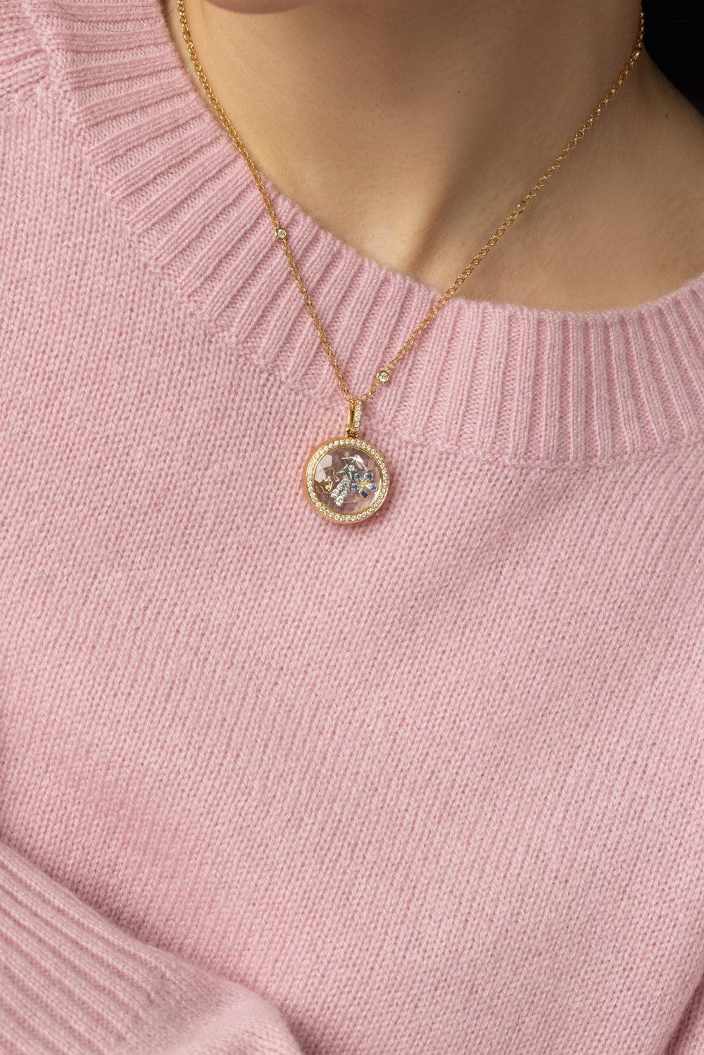 Loquet helios round diamond halo locket necklace in yellow gold.
