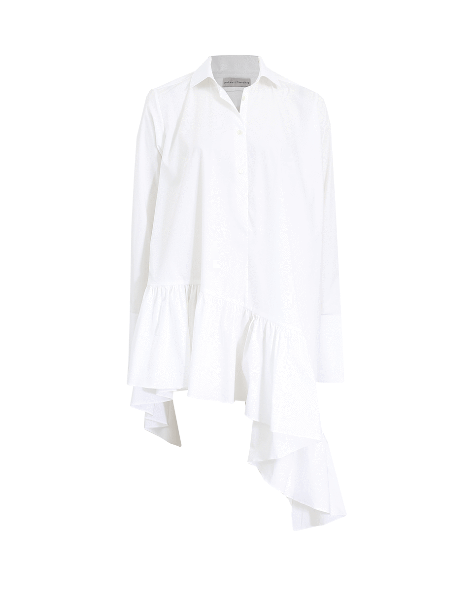 Asymmetrical Ruffle Hem With Loose Fitting Silhouette And Tunic Length Cut