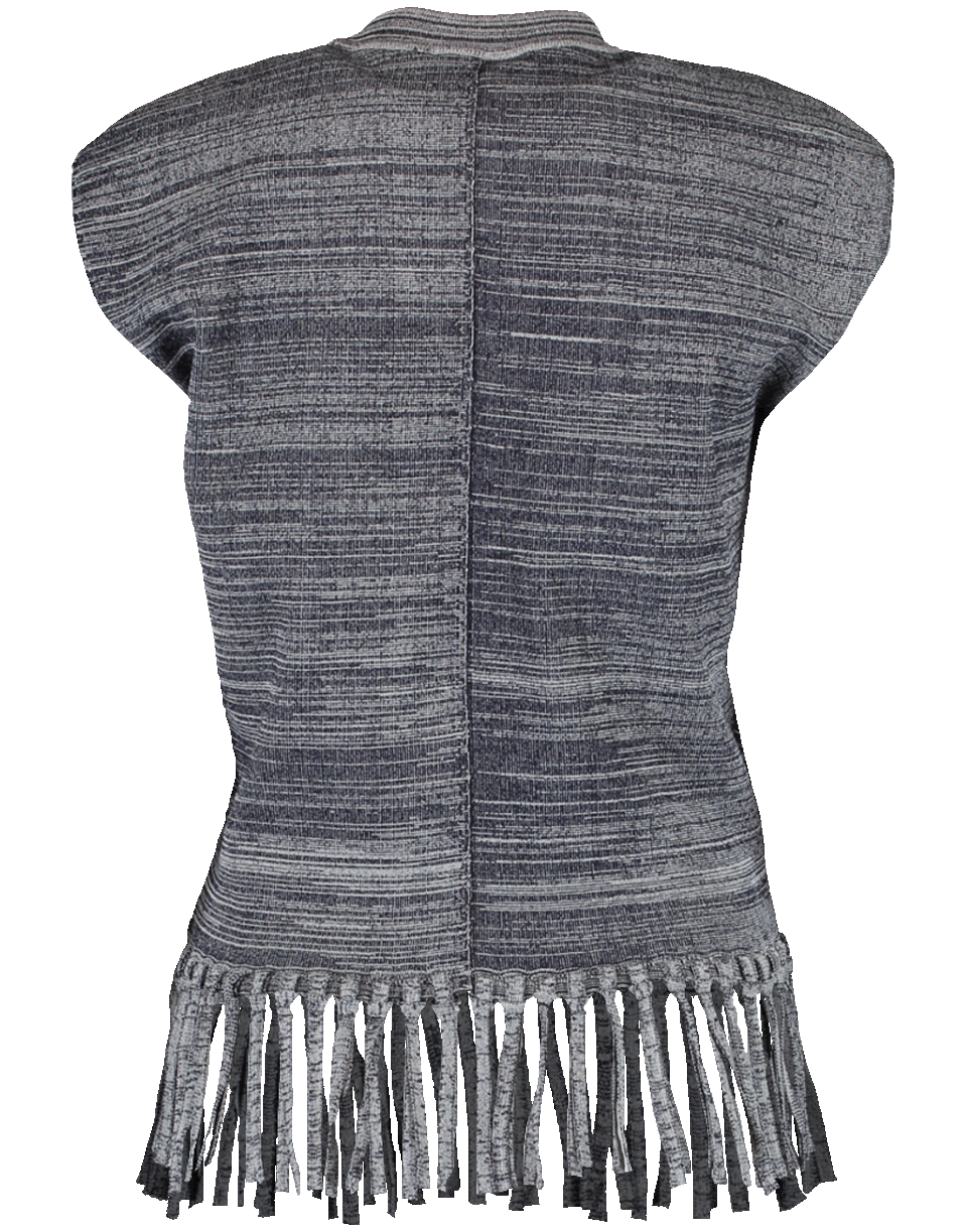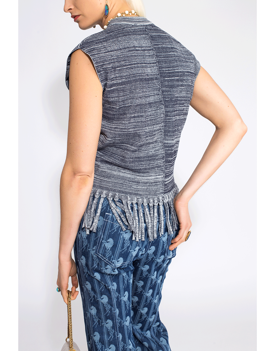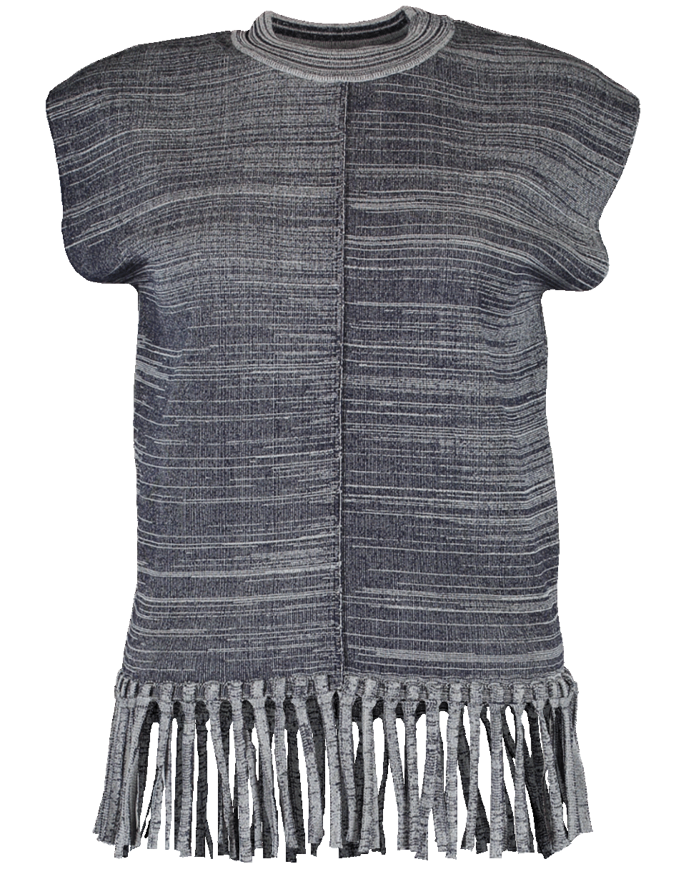 Fringe hem knit top by Chloe. This knit top features a round neckline, cap sleeves and a fringe hem.