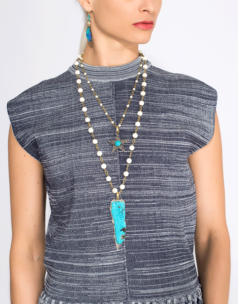 Pair it with white trousers or jeans and accent with stacked bangles.