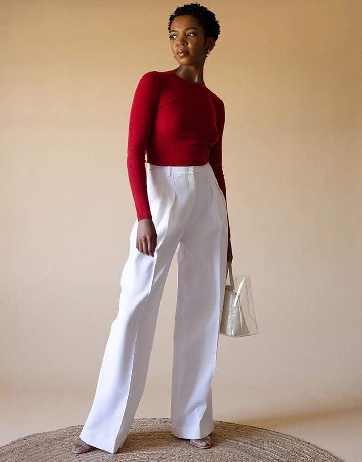 Double crepe sable high waisted wide leg cuffed pant from Michael Kors with a zip fly.